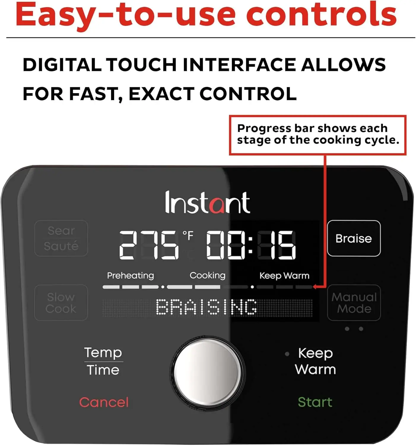 Instant Electric Round Dutch Oven, 6-Quart 1500W, From the Makers of , 5-in-1: Braise, Slow Cook, Sear/Sauté, Cooking Pan, Food