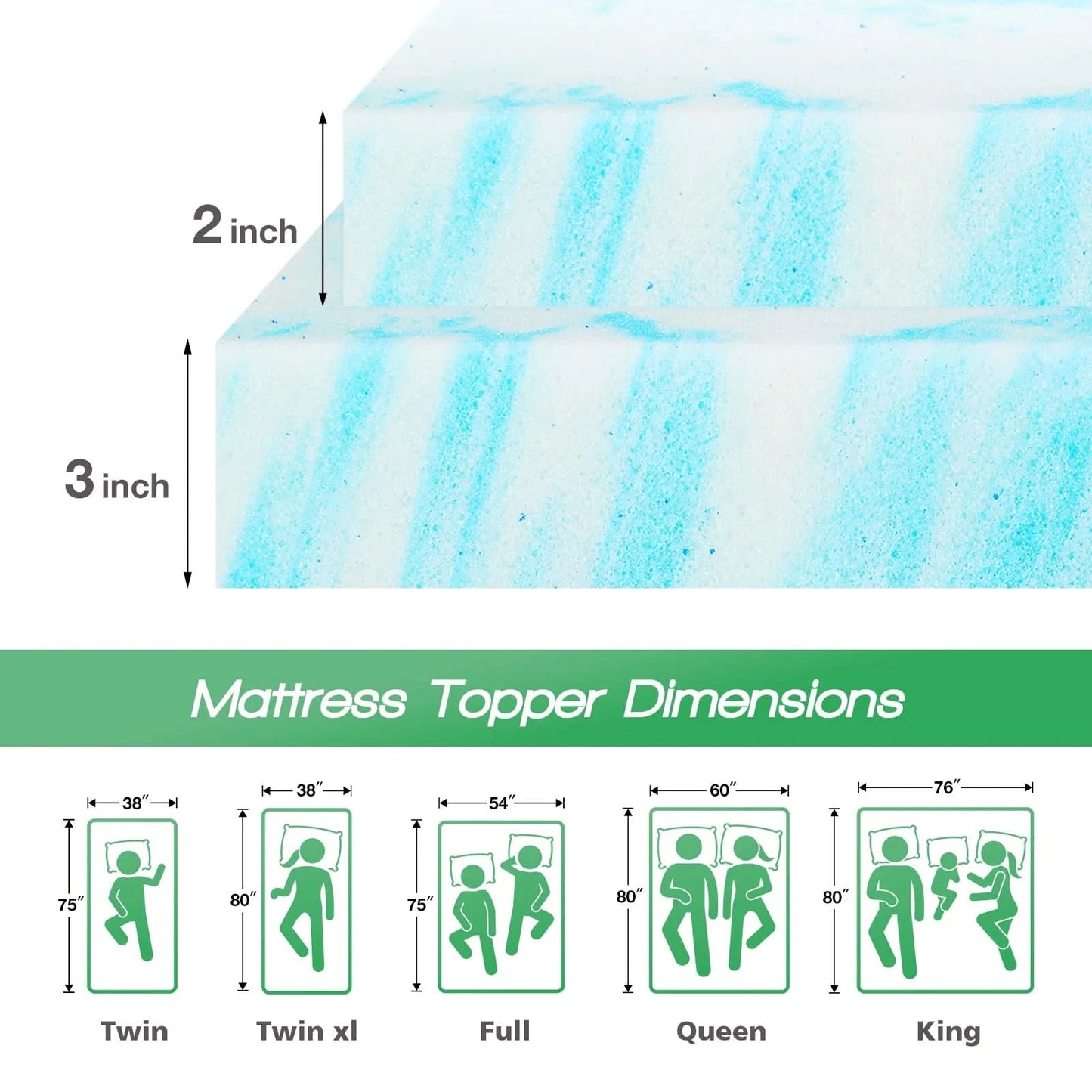 JHK 2-3 Inch Gel Memory Foam Mattress Topper Full Size Cooling Mattress Soft and Breathable Bed Topper School Bedroom Furniture