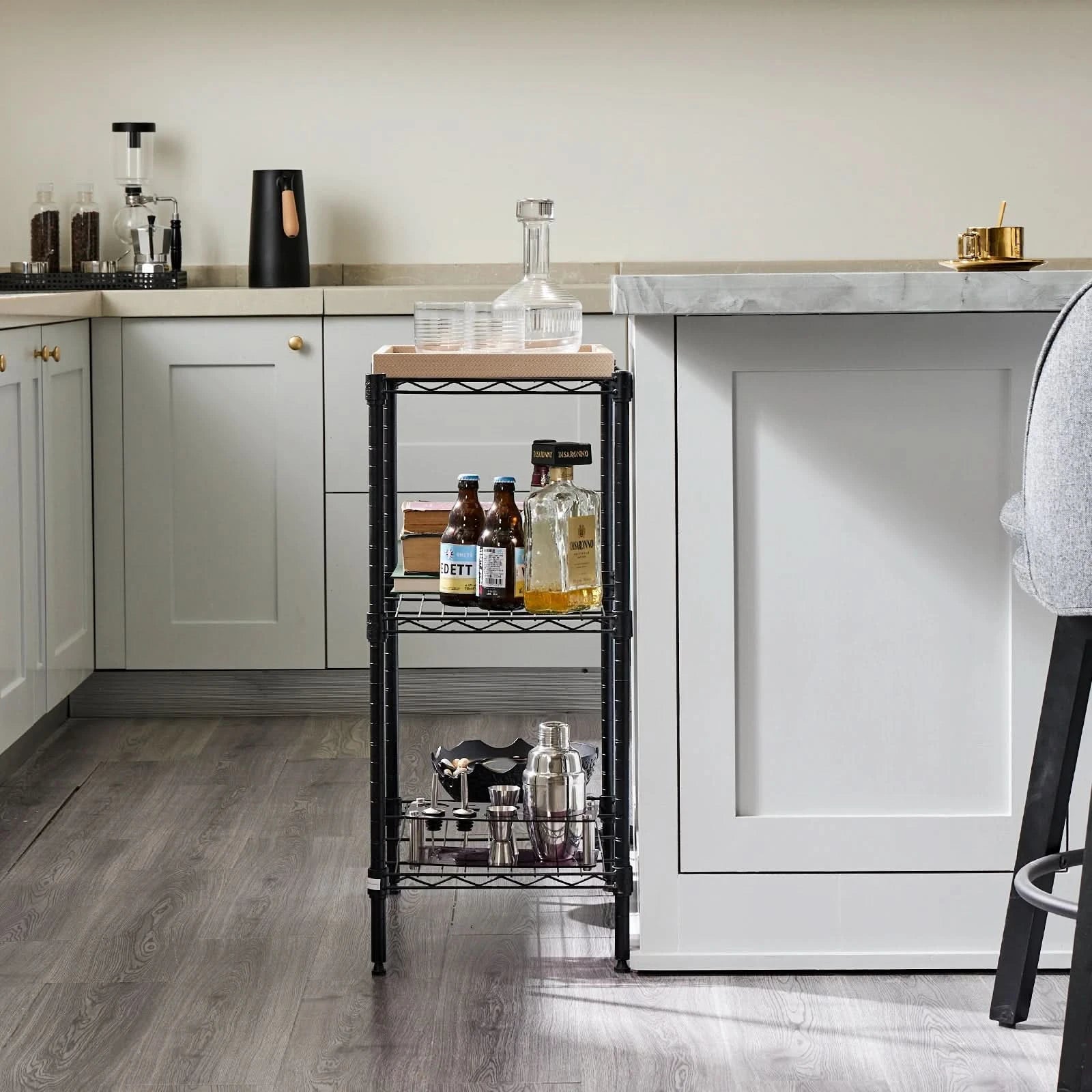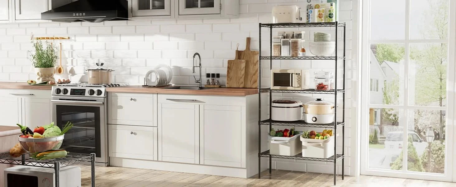 【Adjustable Height】The wire shelf organizer adopts an adjustable design, allowing you to customize the height of each layer according to your storage needs, providing flexibility to accommodate different items and ensuring a clean and orderly space
