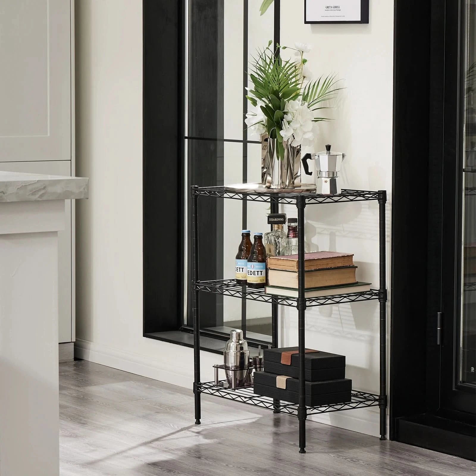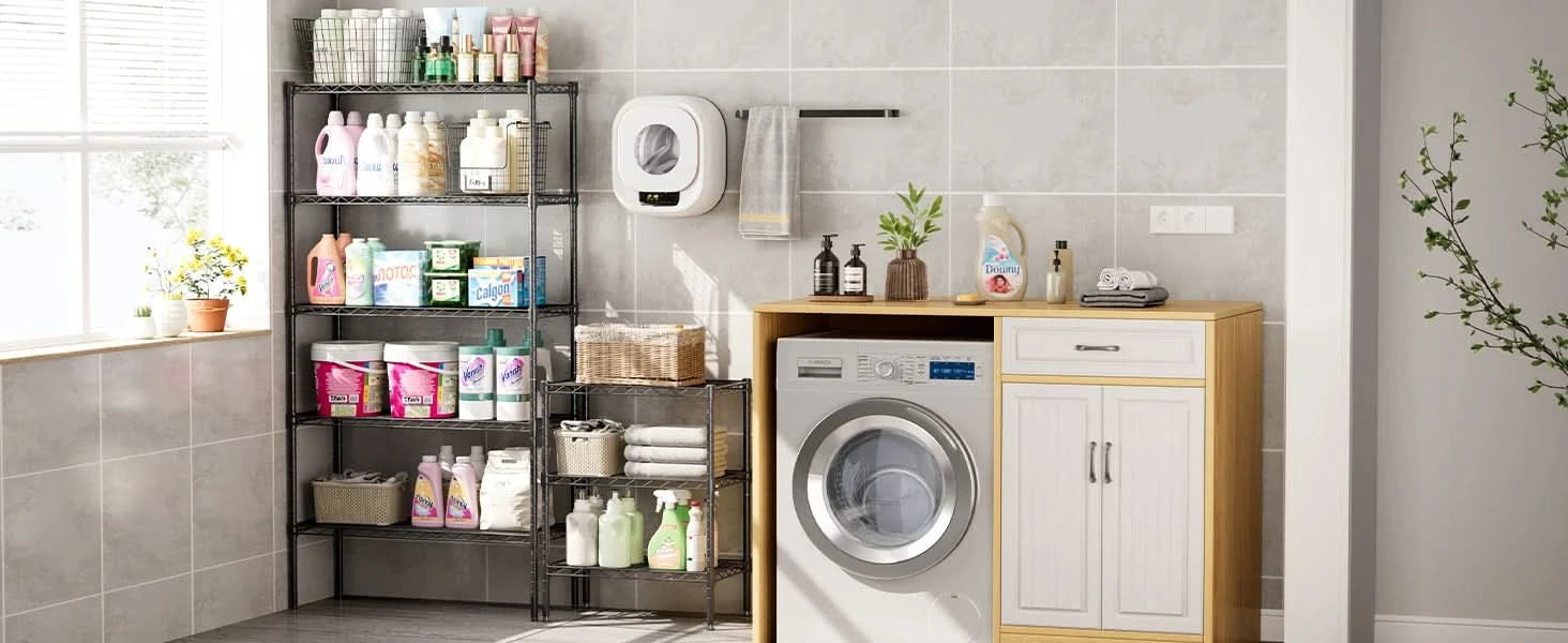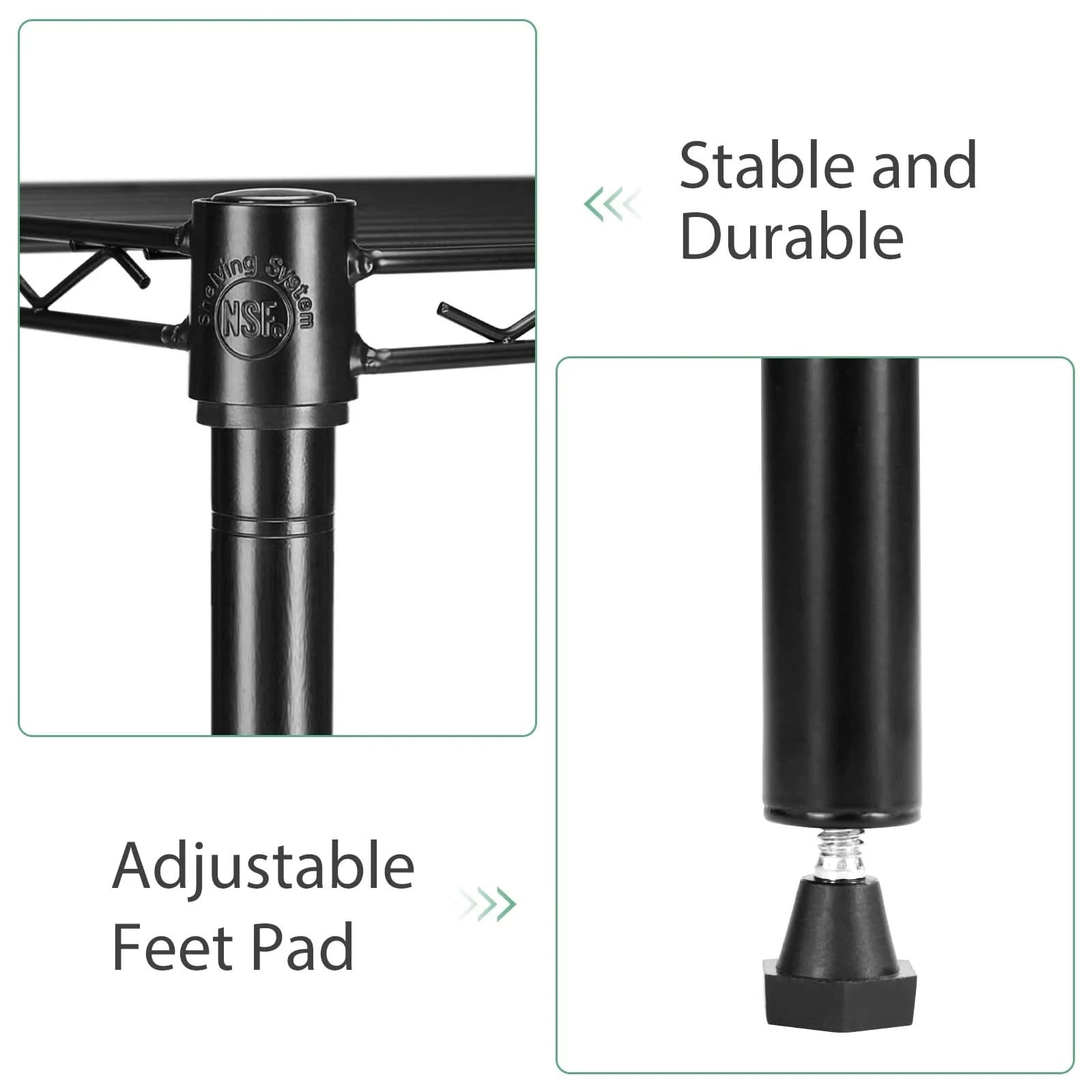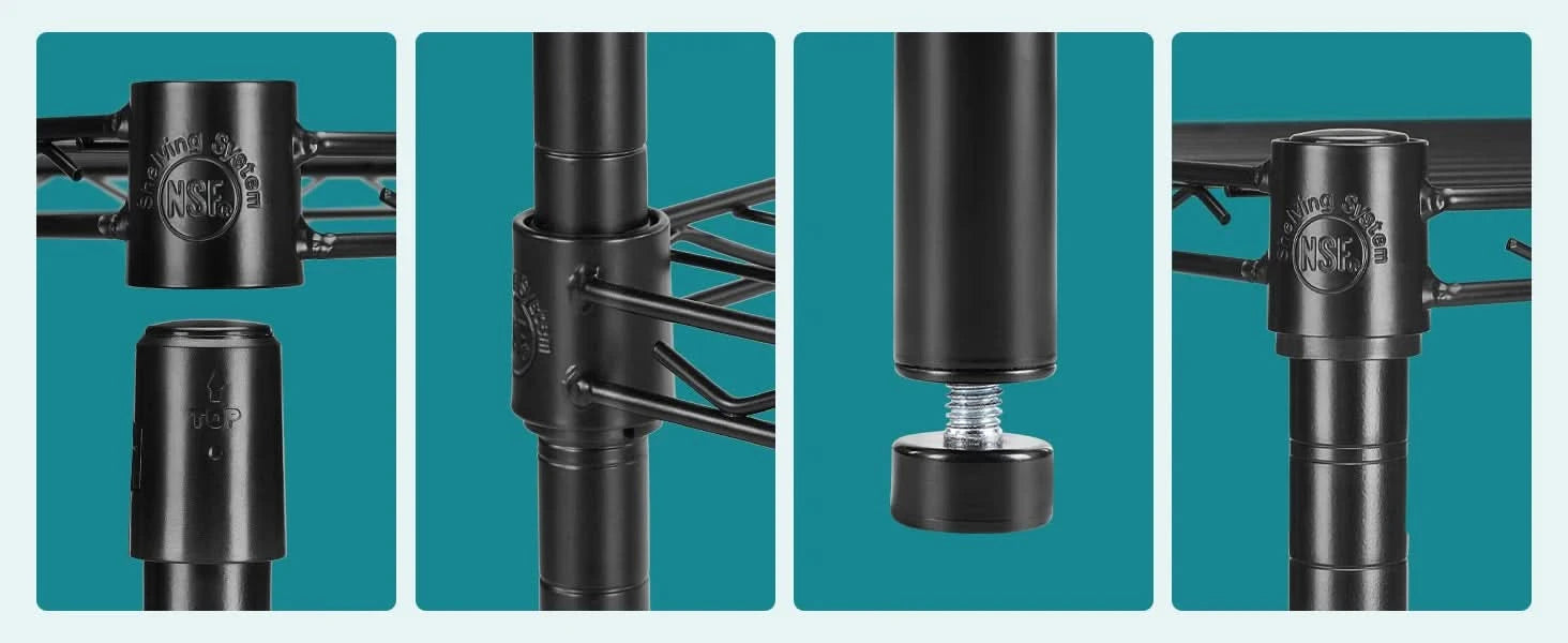 【Wide Applicability】The rack shelf is equipped with rubber feet to protect the floor from scratches, increase stability, and prevent sliding. This storage rack has a wide range of applications and can be used in various environments, including living room, kitchen, garage, laundry room, bathroom, closet shelves etc