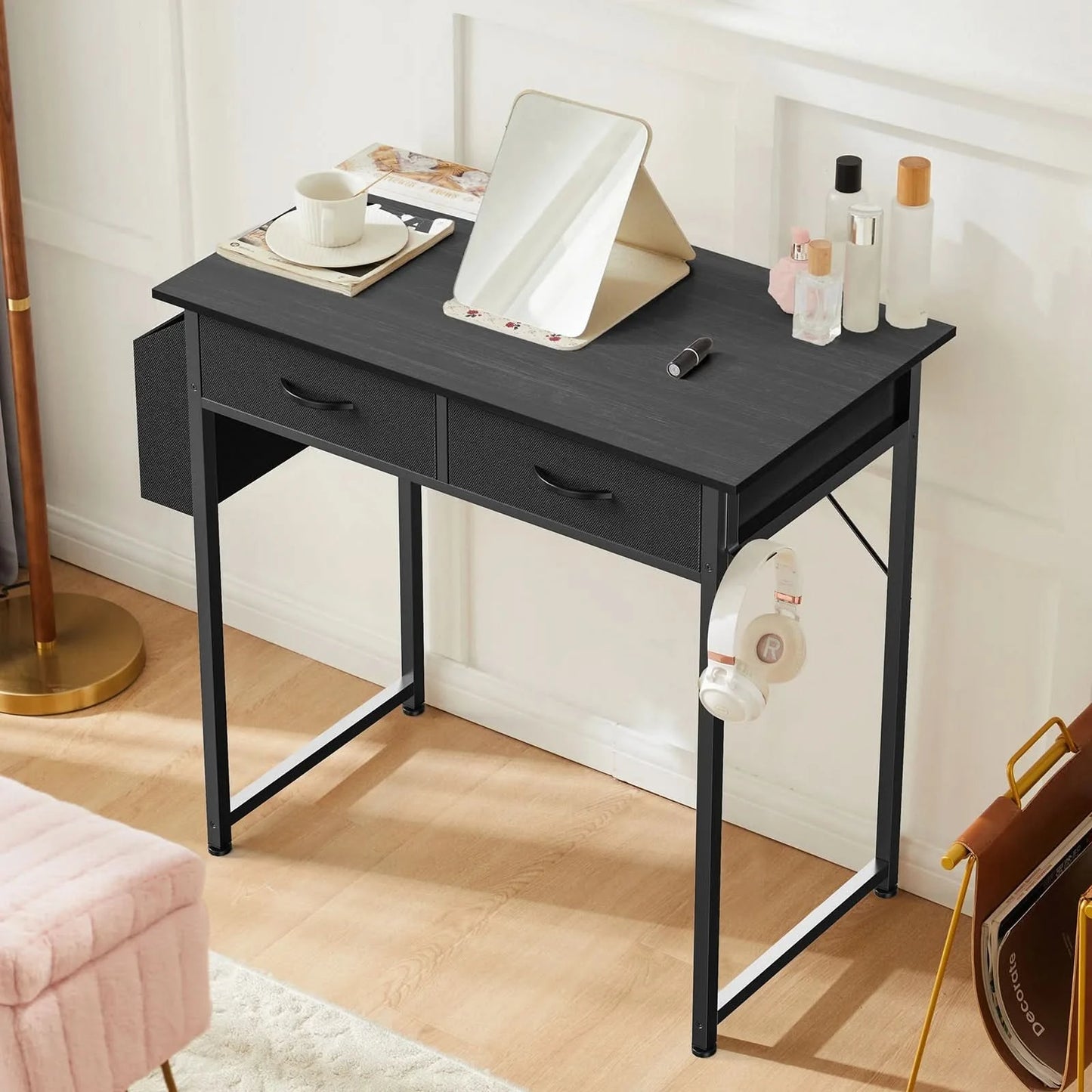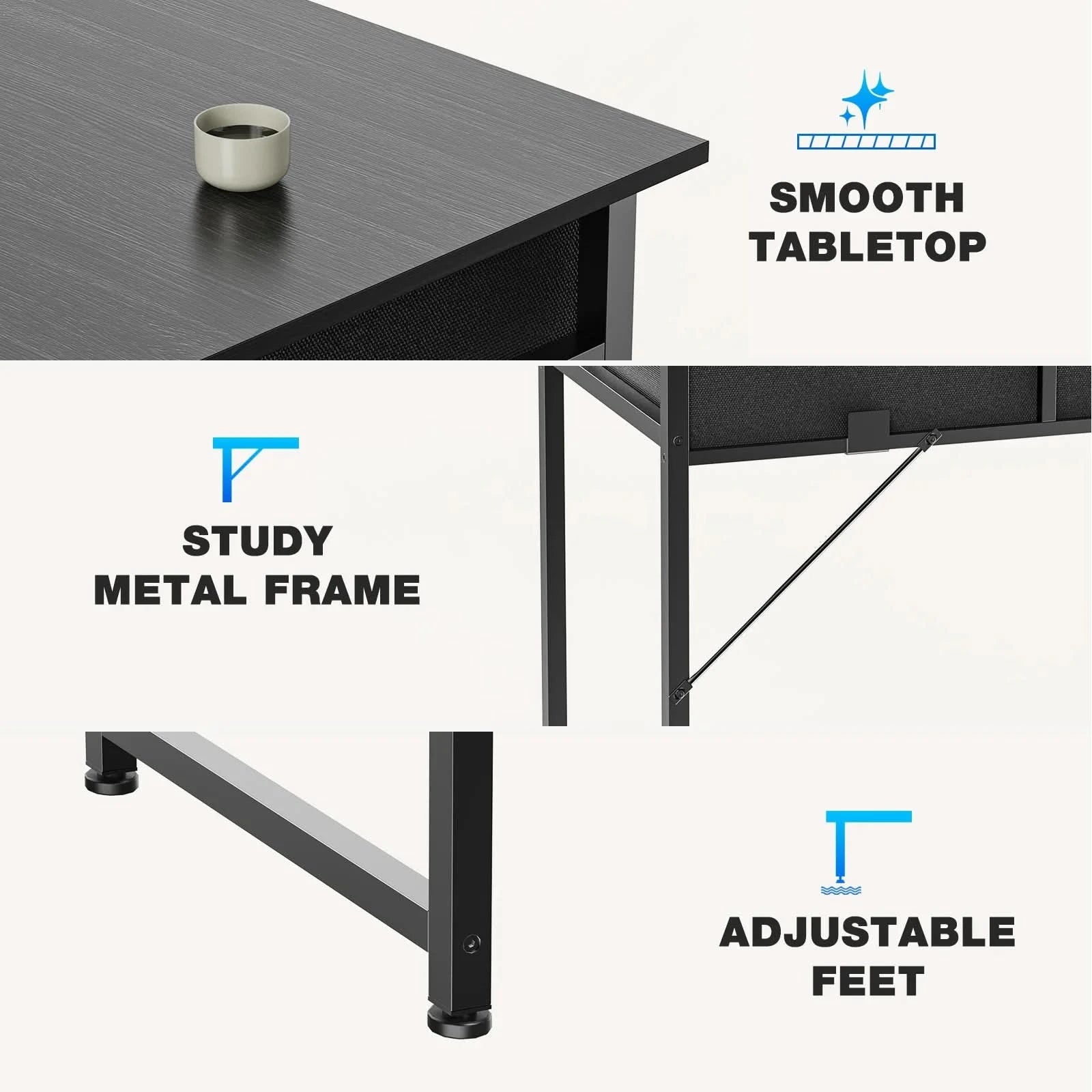 JHK 32 Inch Modern Office Computer Desk with Fabric Storage Drawers Space Side Bag Metal Frame Adjustable Feet For Home PC Table