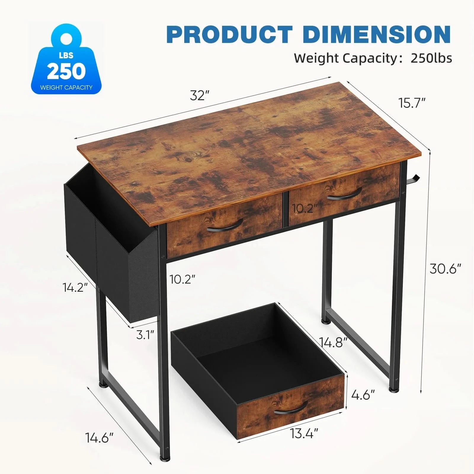 Spacious Storage Space: The Sweetcrispy home office desk provides a large and sturdy storage space for you, perfect for accommodating your computer, monitor, and other office essentials. Its ample surface area allows you to stay organized and maximize productivity. Overall Size: 32" x 15.7" x 30.6". Drawer Size: 14.8” x 13.4” x 4.6”.