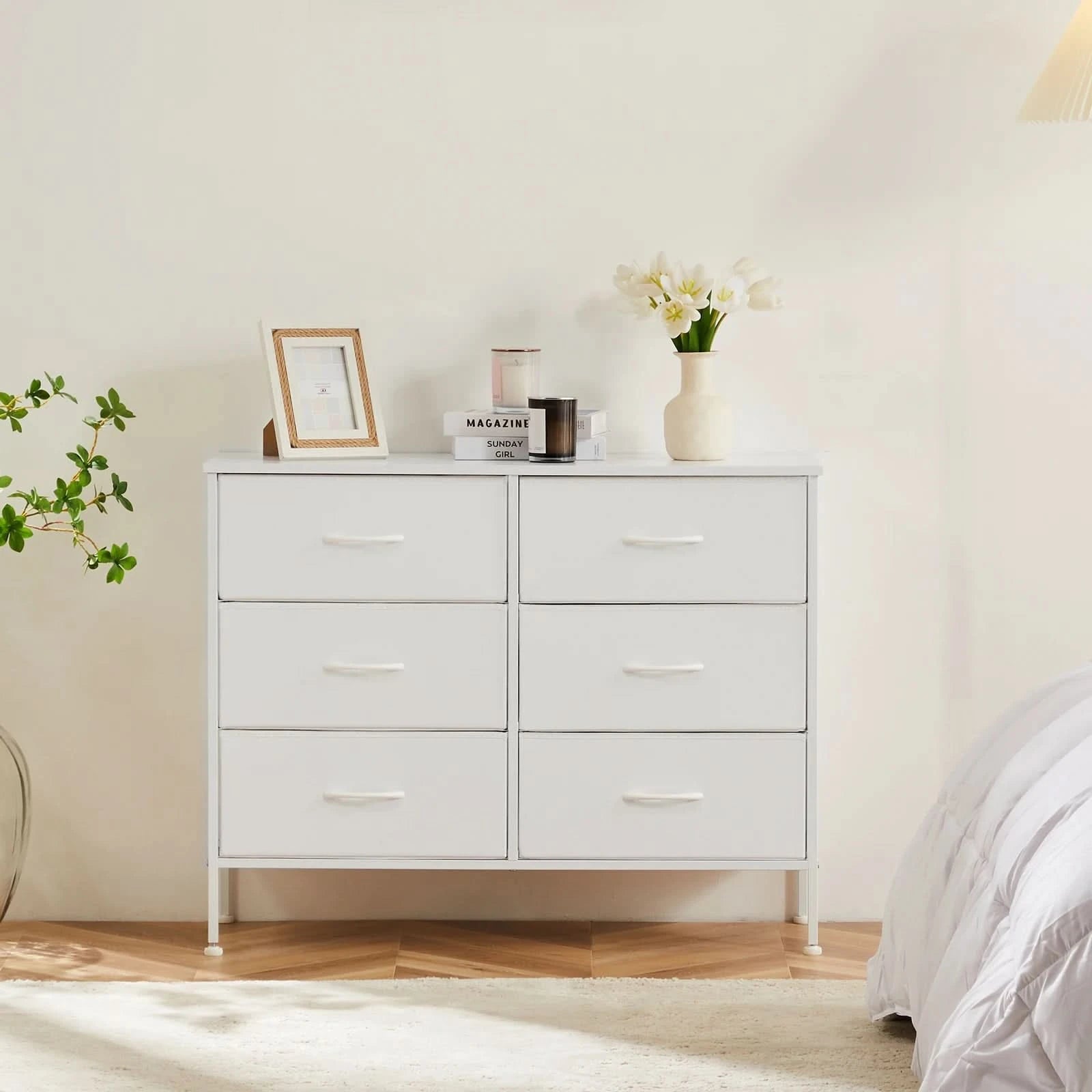 JHK 6 Fabric Drawers Nightstand For Bedroom Bedside Sofa Table With Storage Closet Chest Clothes Display Cabinet Furniture