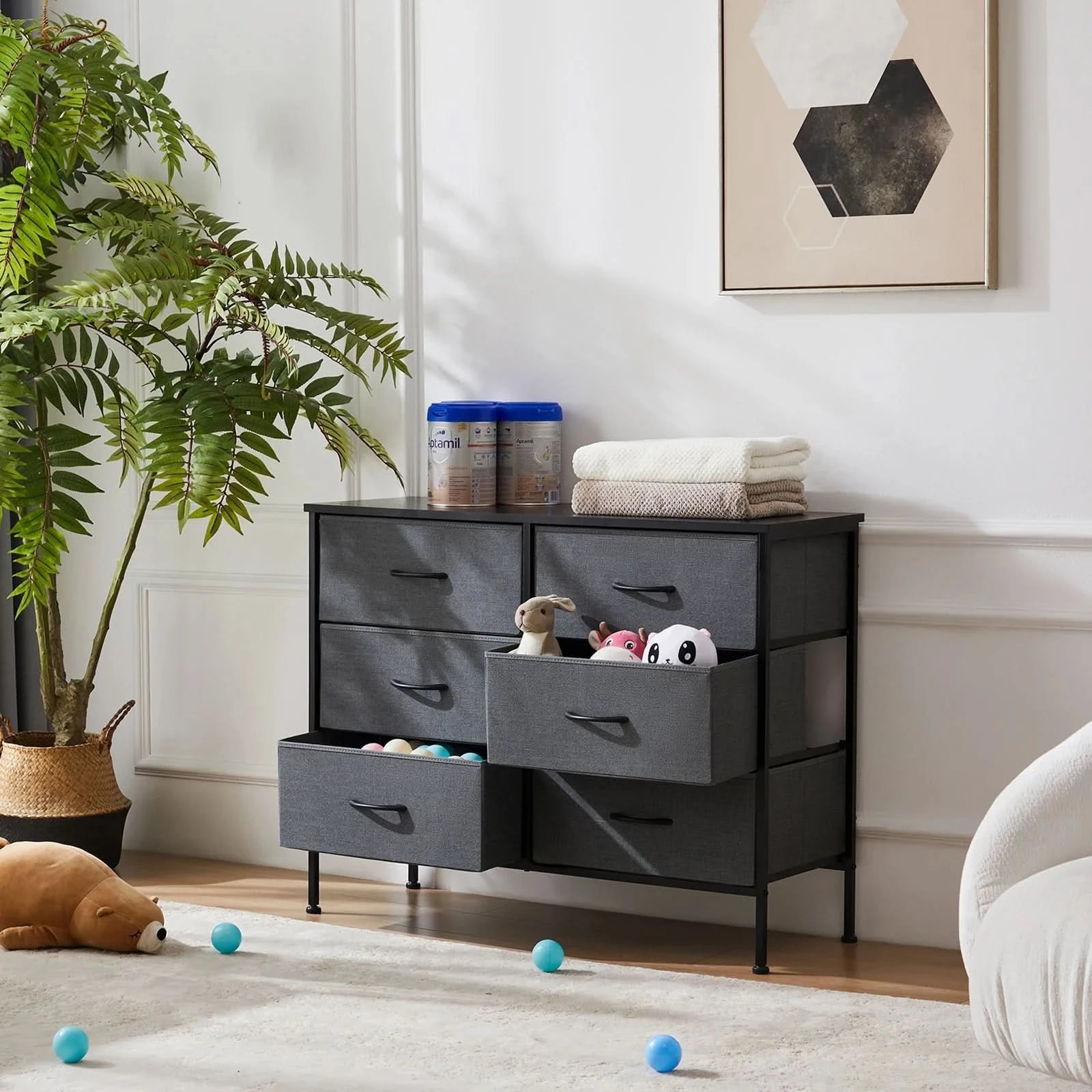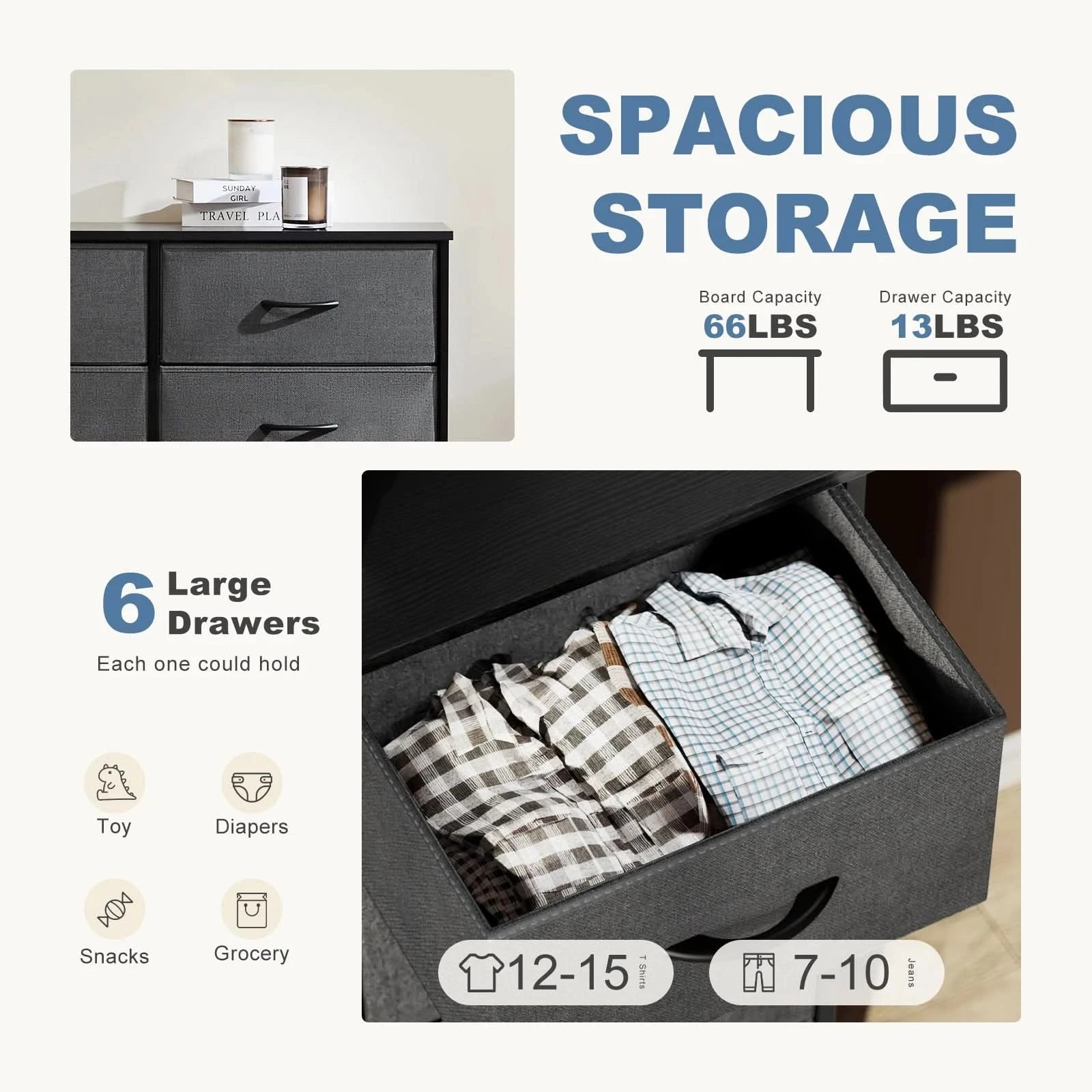 Check FULL-size: This dresser for bedroom with fabric bins will save your space and is a great piece of furniture to store such as magazines, clothes, or children's toys. The wooden board at the top has a load-bearing capacity of up to 66 pounds and can be used instead of a TV stand.