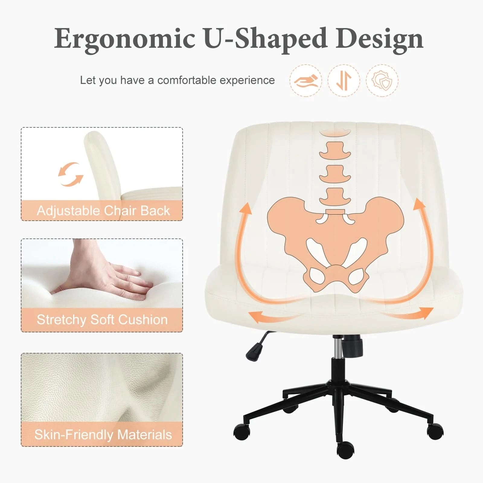JHK Armless Cross Office Chairs with Wheels PU Leather Swivel Living Room Desk Chair Height Adjustable Support Seat Furniture