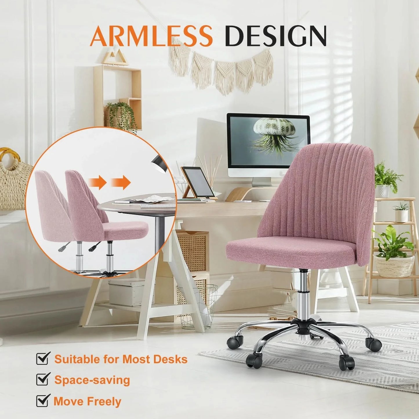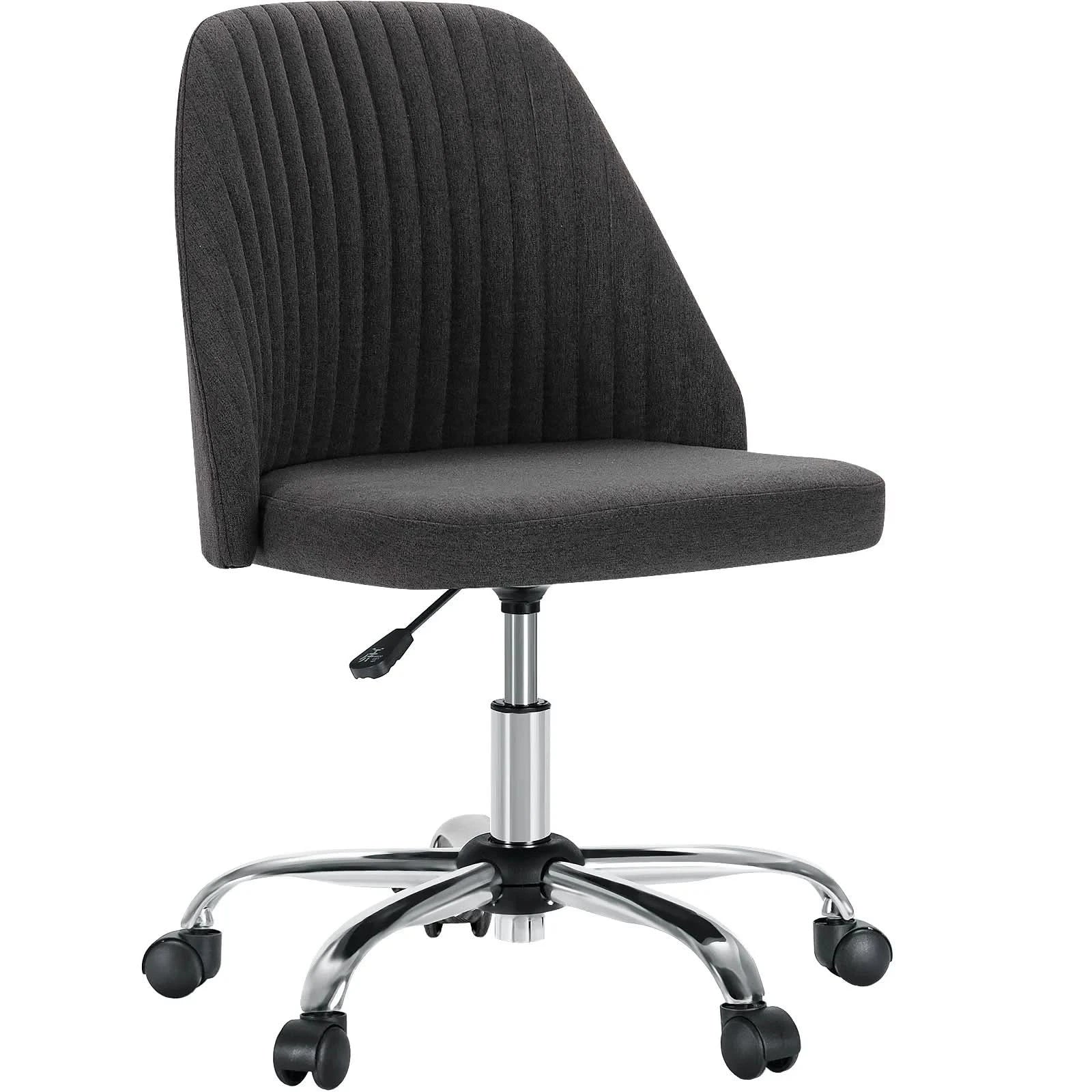JHK Armless Small Desk Office Chair Cute Vanity Swivel Chair with Back Modern Fabric with Wheels Swivel Task Home Gaming Chair
