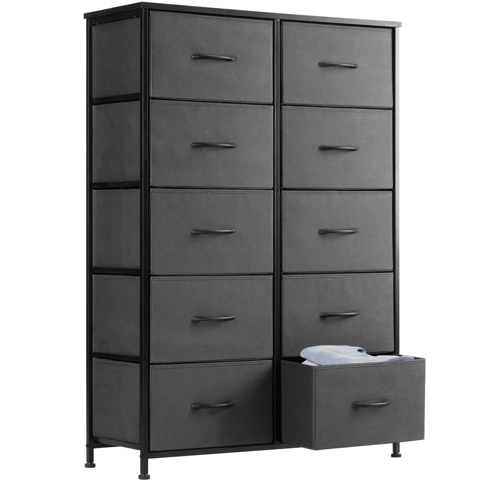 JHK Bedside Table For Bedroom With 10 Fabric Drawers Wardrobe Steel Frame Closet For Storage Cabinet Living Room Of Furniture