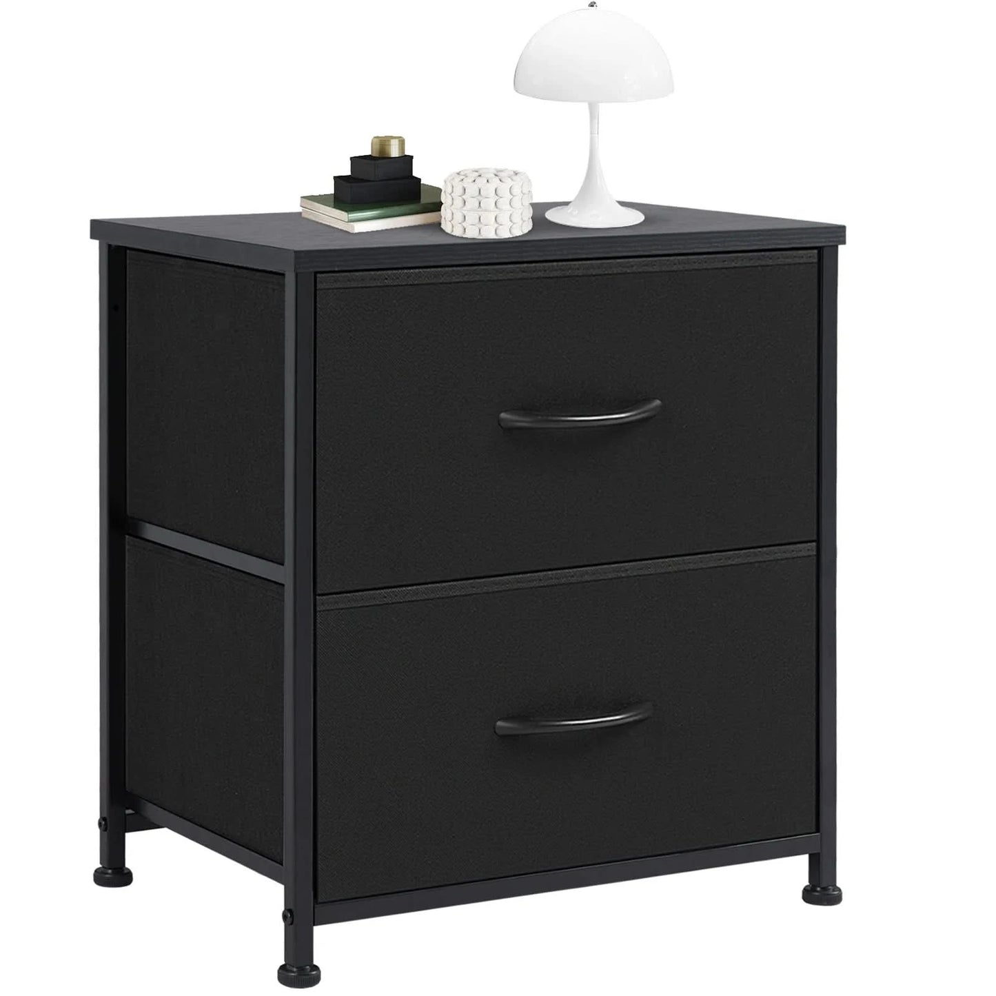 【Large Capacity】The night stands with 2 removable fabric drawers offer extra storage space for organizing and storing various items, whether it's clothes, books, sundries, or snacks. Wooden tabletops are also perfectly keeping alarm clocks, phones, and glasses within easy reach.