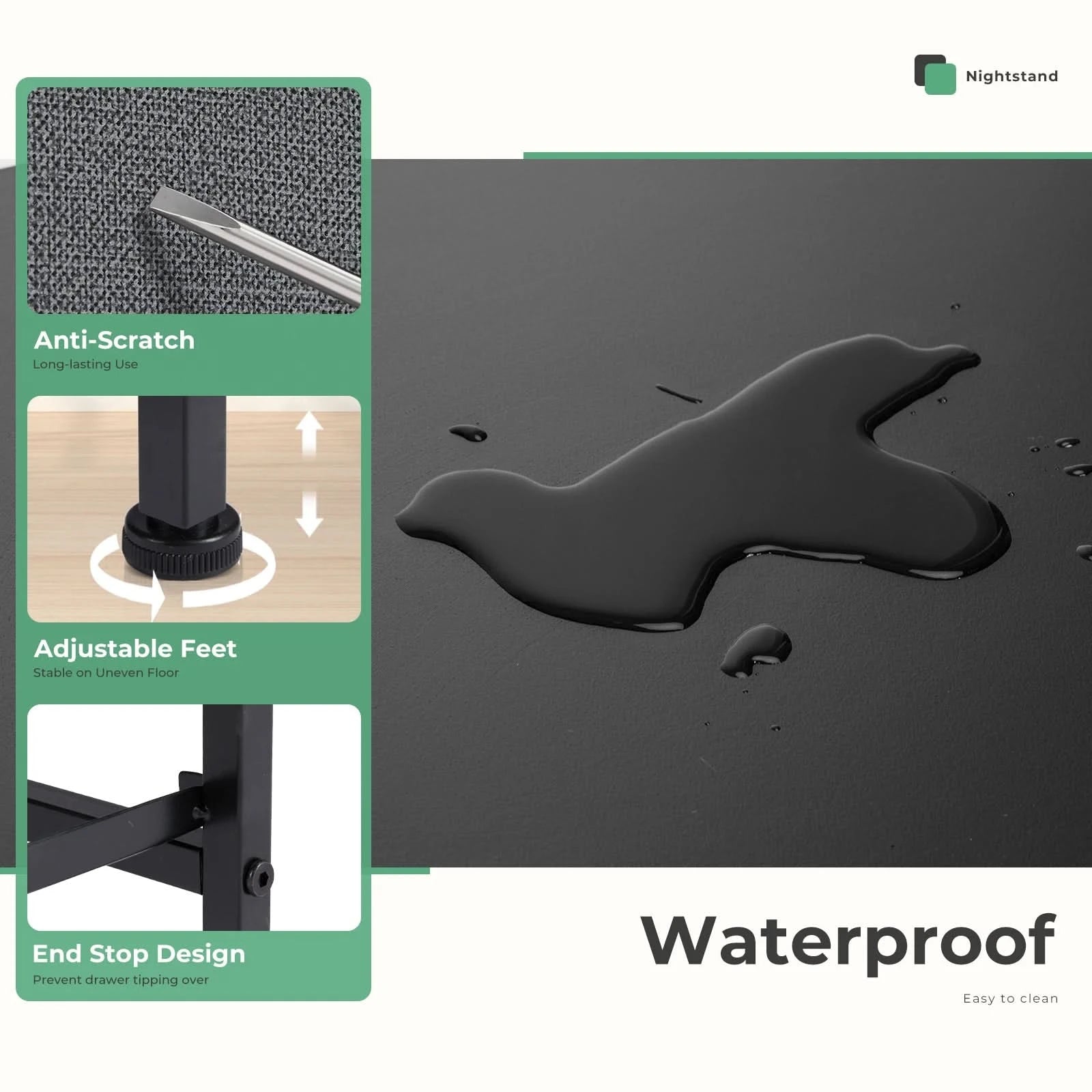 【Studry & Durable】The side tables is equipped with 1.5mm thickened steel frame, 15mm MDF board and waterproof wooden board for a long-lasting structure that is not easily deformed. 4 adjustable plastic feet protect floors from scratches. Easy-pull drawers glide and close smoothly.