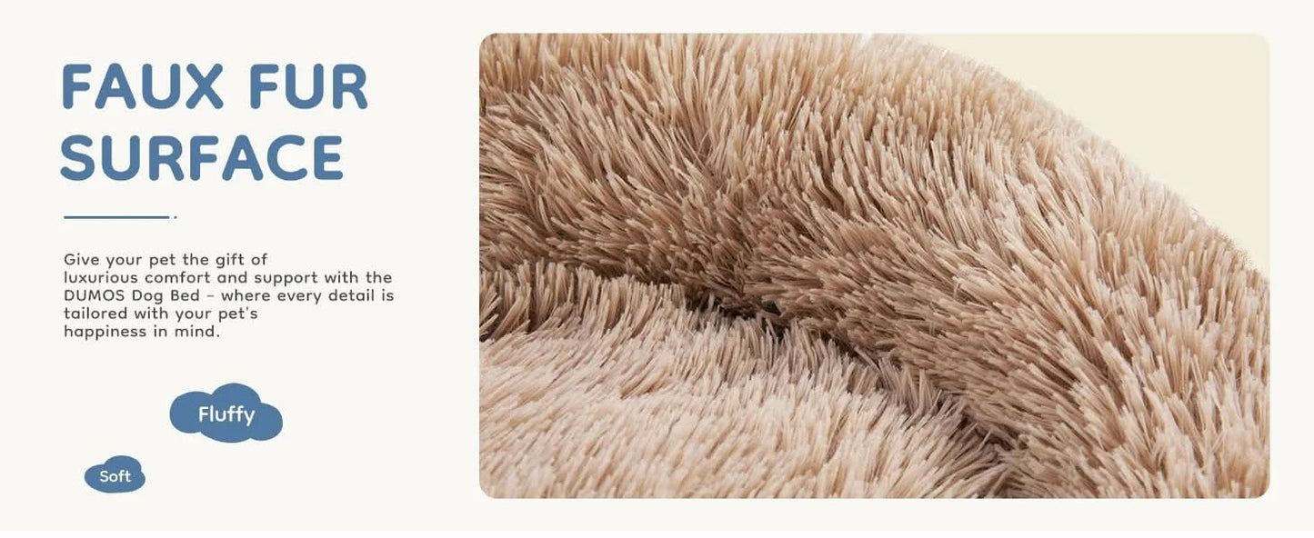 JHK Calming Dog Bed for Medium to Large Dogs Washable Large Pet Bed Anti-Slip Round Fluffy Plush Faux Fur Dog Bed