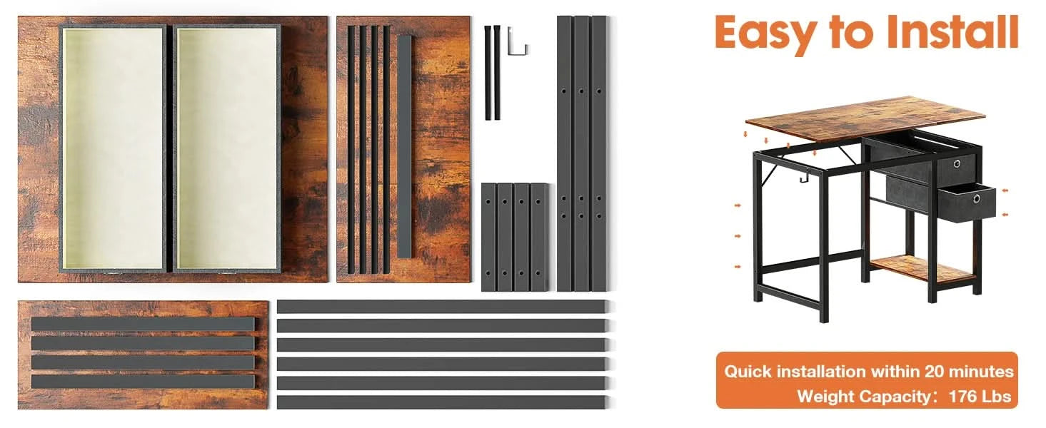 【Fast Installation】Easy to assemble, the installation will take 20-30 minutes to complete. The package comes with all the hardware and components you need. Please note read the installation manual at first. No need to hesitate, come and get your wood desk.