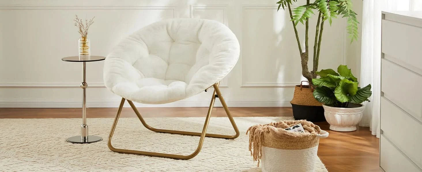 【Sink into Comfort】 Our saucer chair offers the ultimate relaxation experience, as if lounging on a fluffy cloud. The thick, fluffy cushion provides unparalleled comfort, making it the perfect spot for reading, unwinding with entertainment, or simply taking a break.