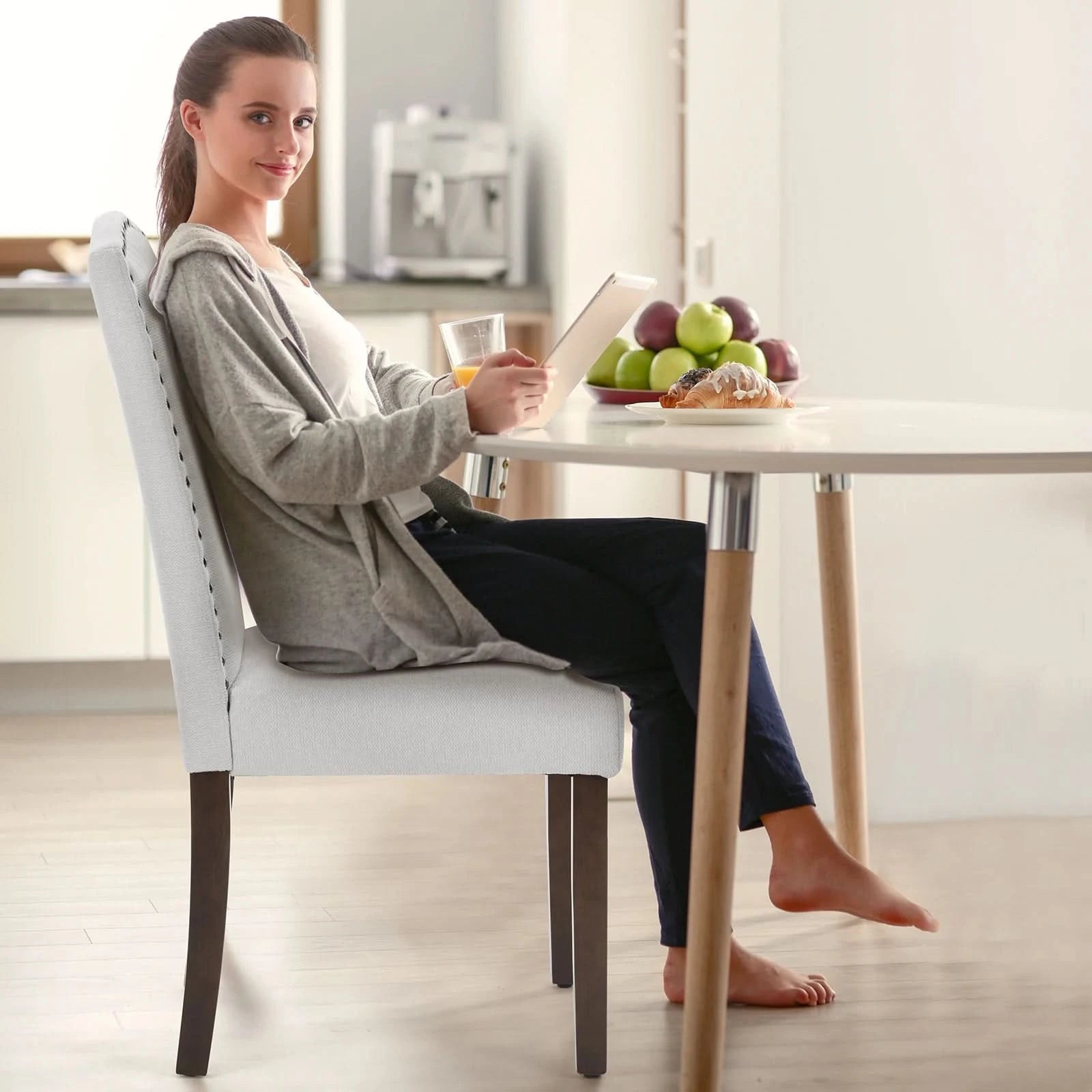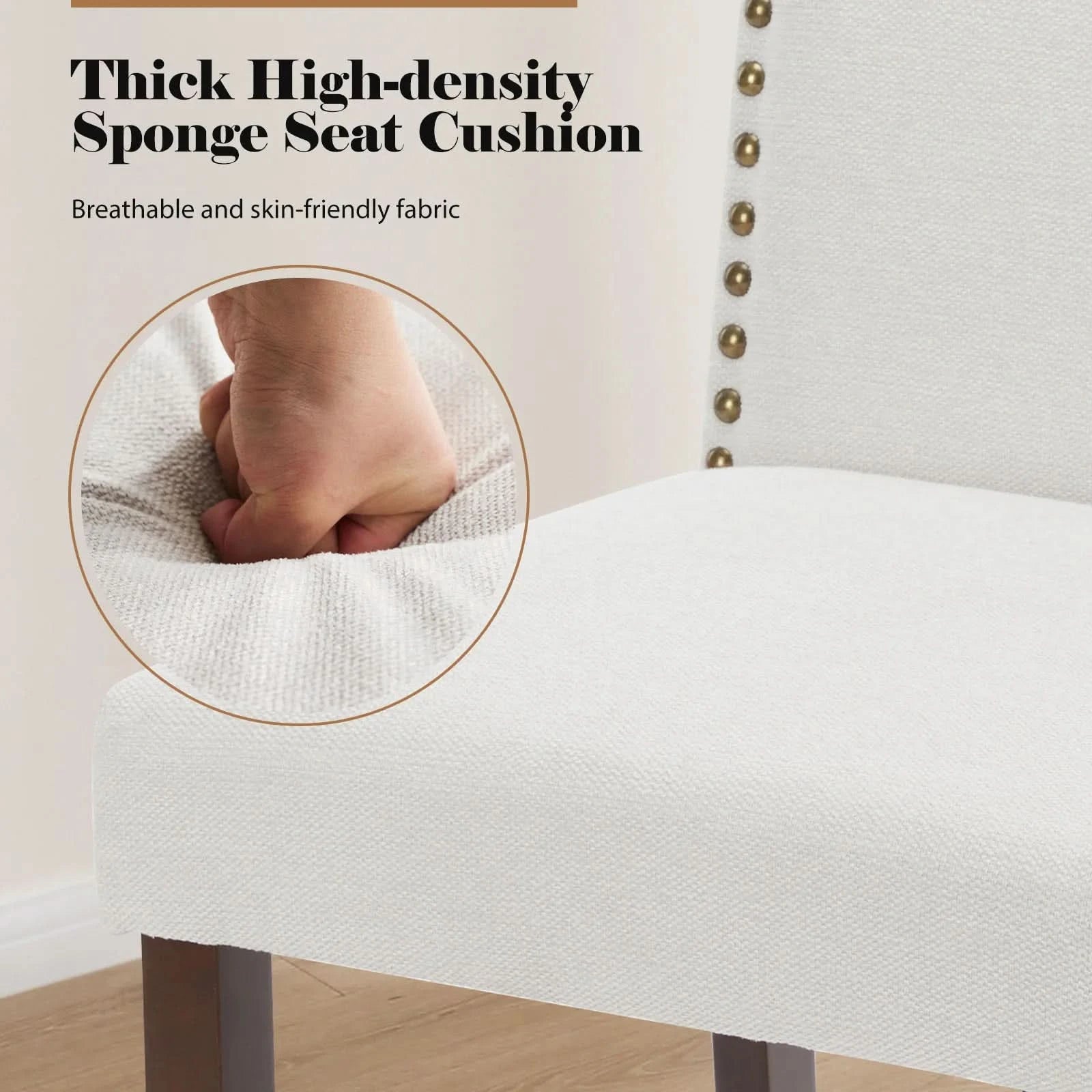JHK Dining Chairs Padded Backrest Set Of 2 Thickened Sponge Cushion Upholstered Fabric Kitchen Chairs With Nailhead Trim Home