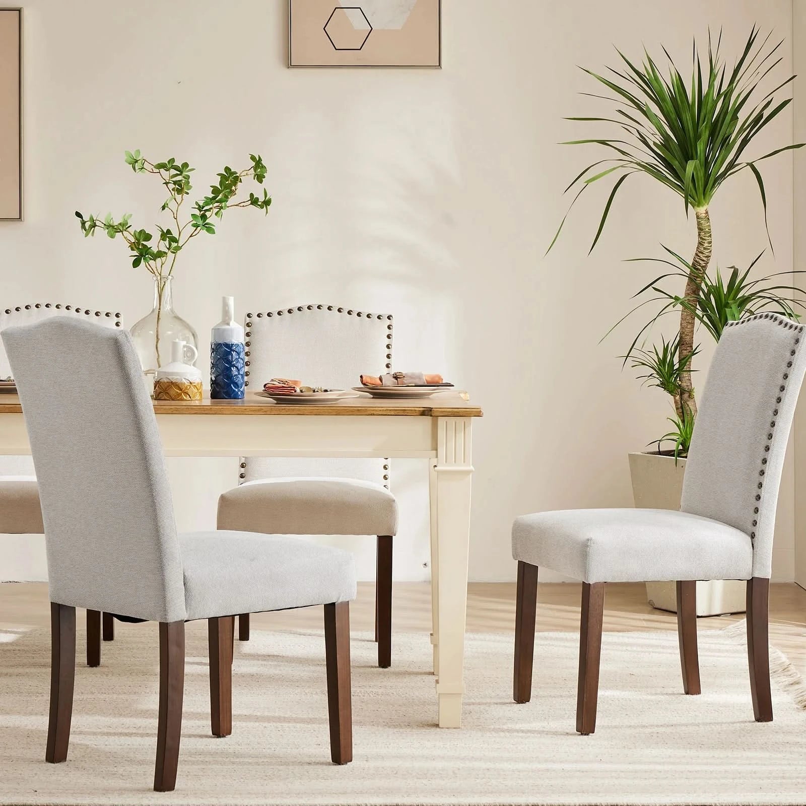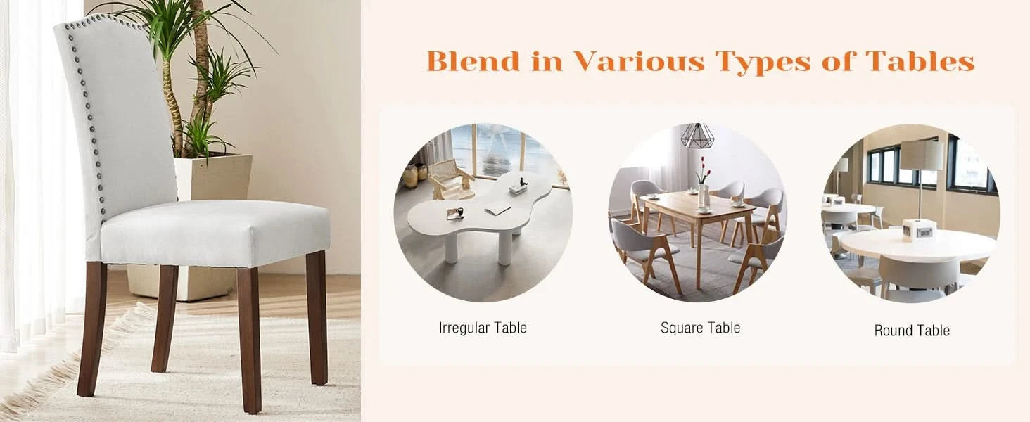 [Gorgeous and elegant appearance] A large number of decorative nail head decorative interiors and classic lines make these dining chairs look super comfortable and elegant, complementing your soft decoration. The cushion and backrest of the dining chair are made of fabric, with various colors.