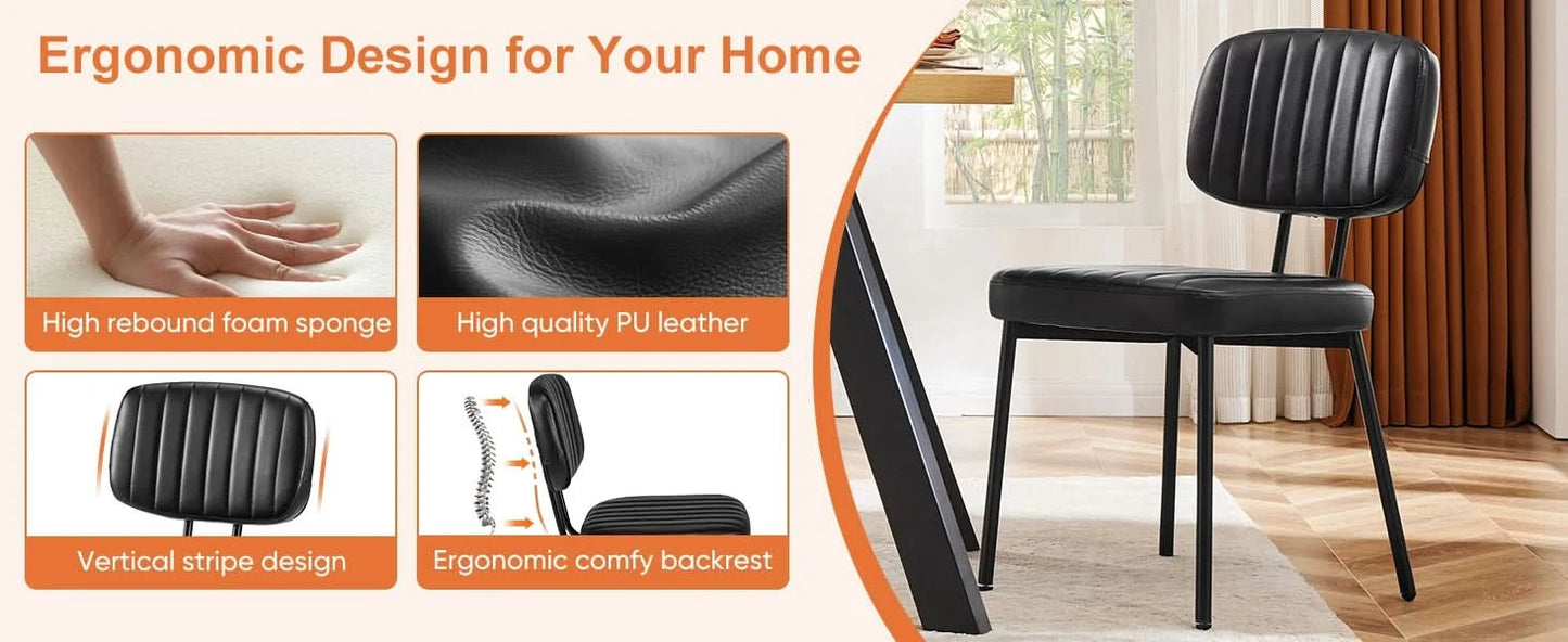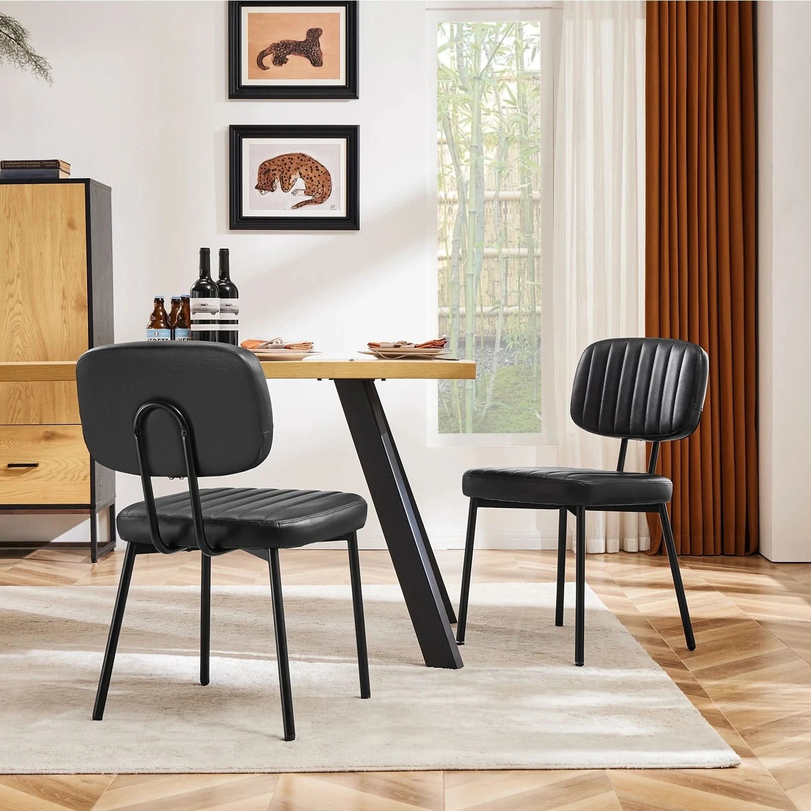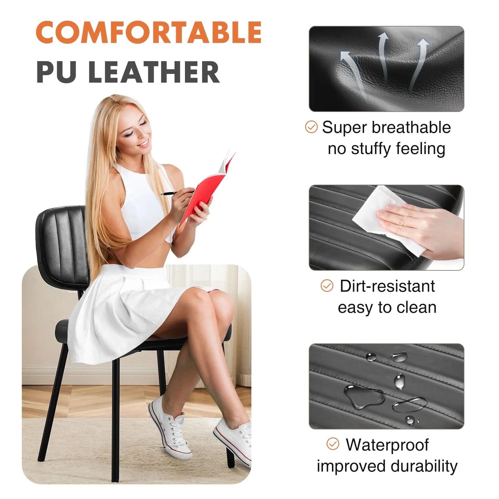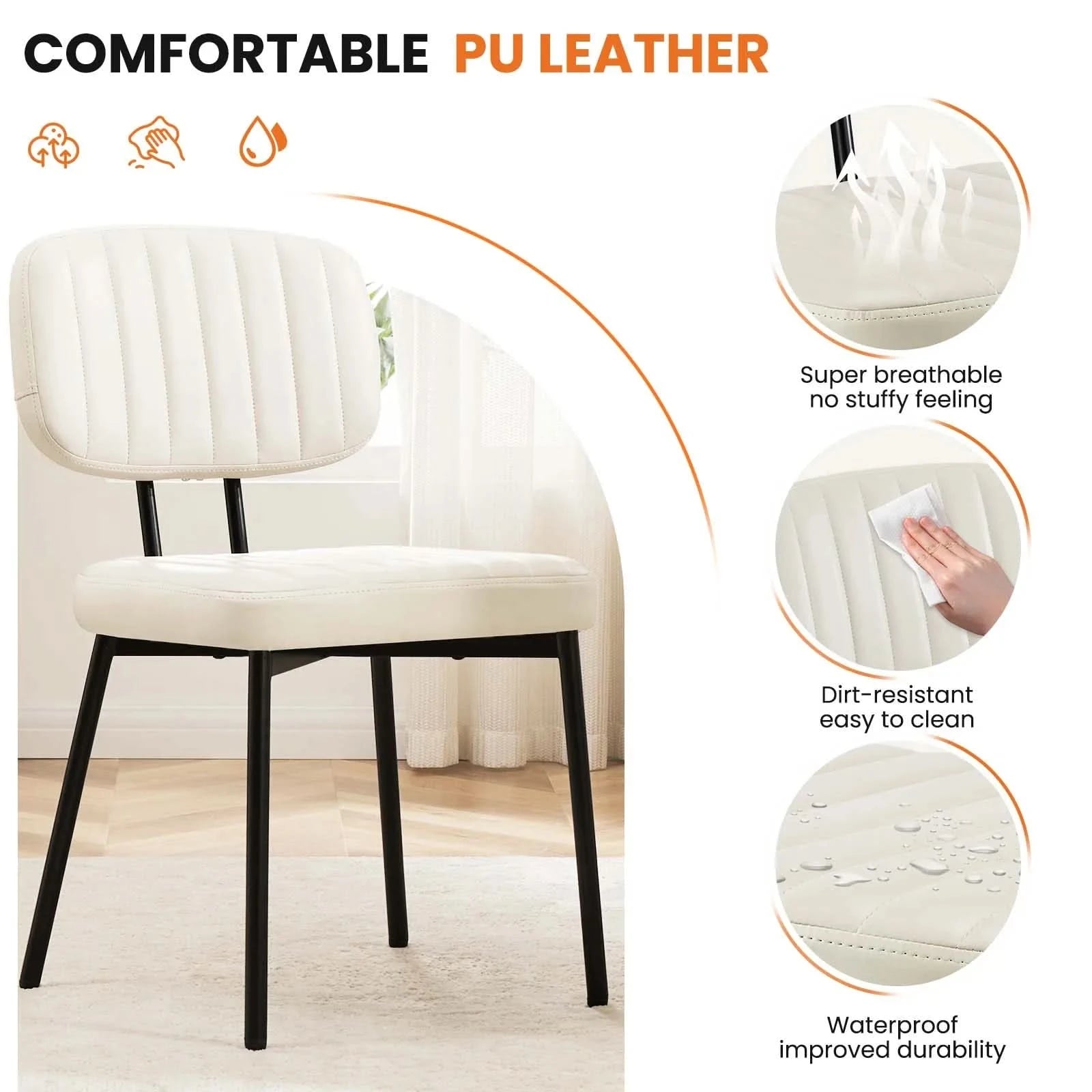 JHK Dining Chairs Set of 2 Ergonomic Lumbar Support PU Leather Foam Sponge Cushion Seat and Metal Legs for Modern Kitchen