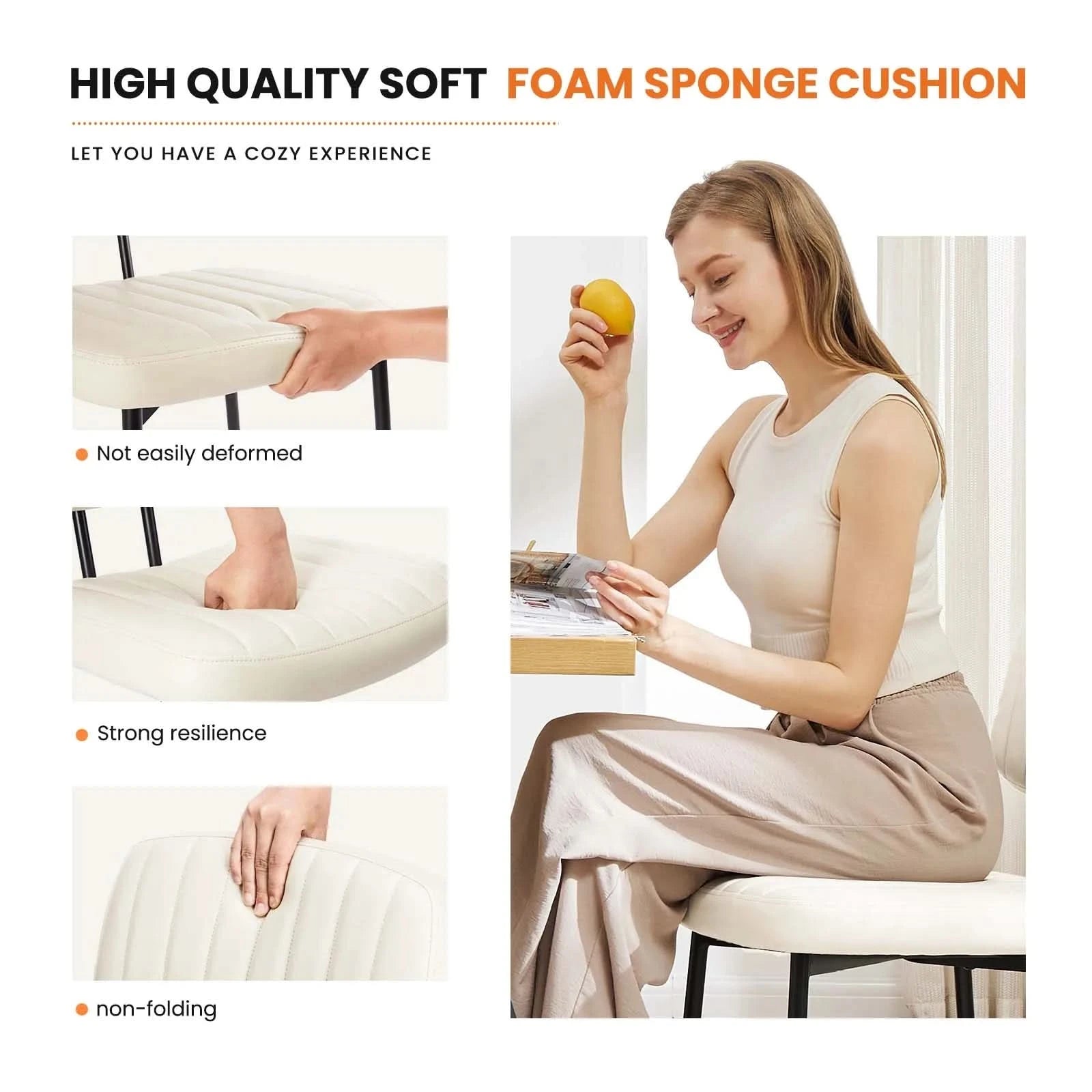 ćDurable and sturdyćWhite upholstered dining chairs feature metal legs for strong support, with a maximum weight capacity of 250lbs. The bottom of the chair is equipped with adjustable and scratch resistant foot pads, which can level the chair according to the ground while protecting the floor, increasing the stability of the chair, and providing a comfortable seating experience