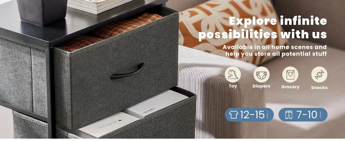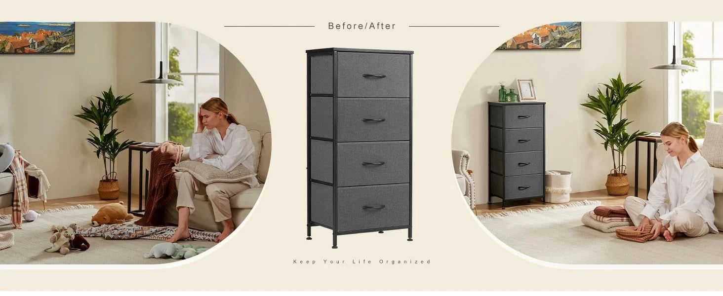 JHK Dresser For Bedroom With 4 Fabric Drawers Nightstand Wardrobe Steel Frame Closet For Clothes Storage Cabinet Of Furniture