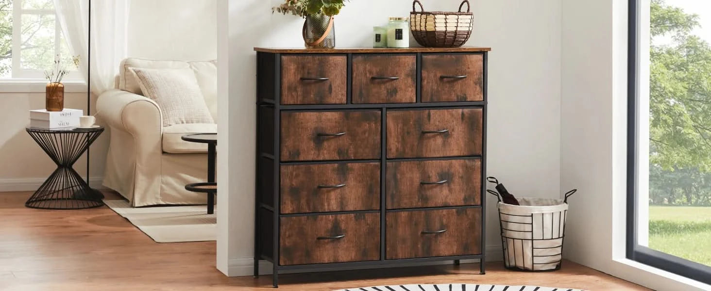 [Sufficient storage space] 6 large drawers and 3 small drawers provide large storage space. You can separate areas to make storage more tidy. The large drawer can store at least 12 ordinary adult T-shirts or 7 pairs of jeans. The small drawer can store socks, underwear, children's toys, etc. If you have more than one dresser, they can also be stacked to save space.