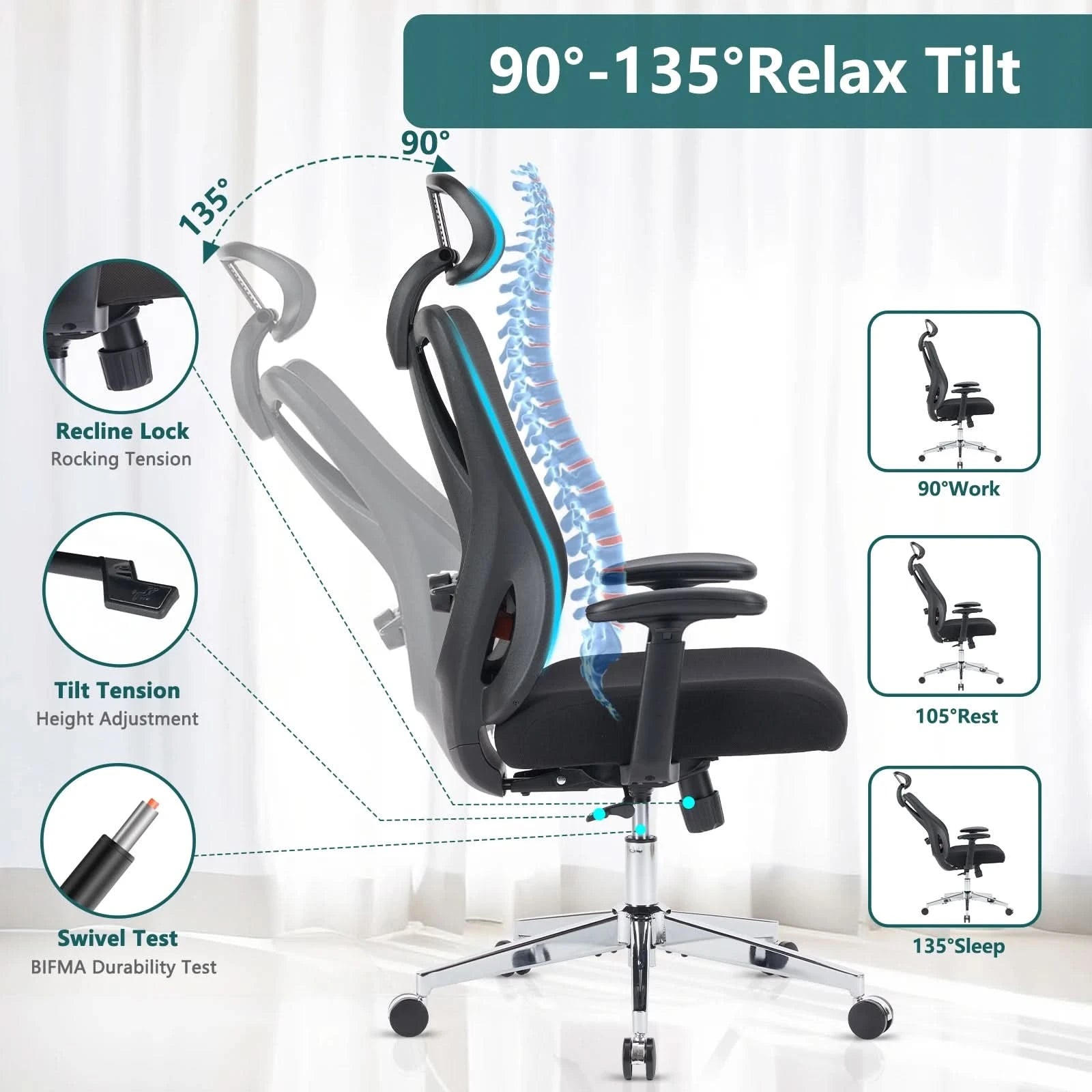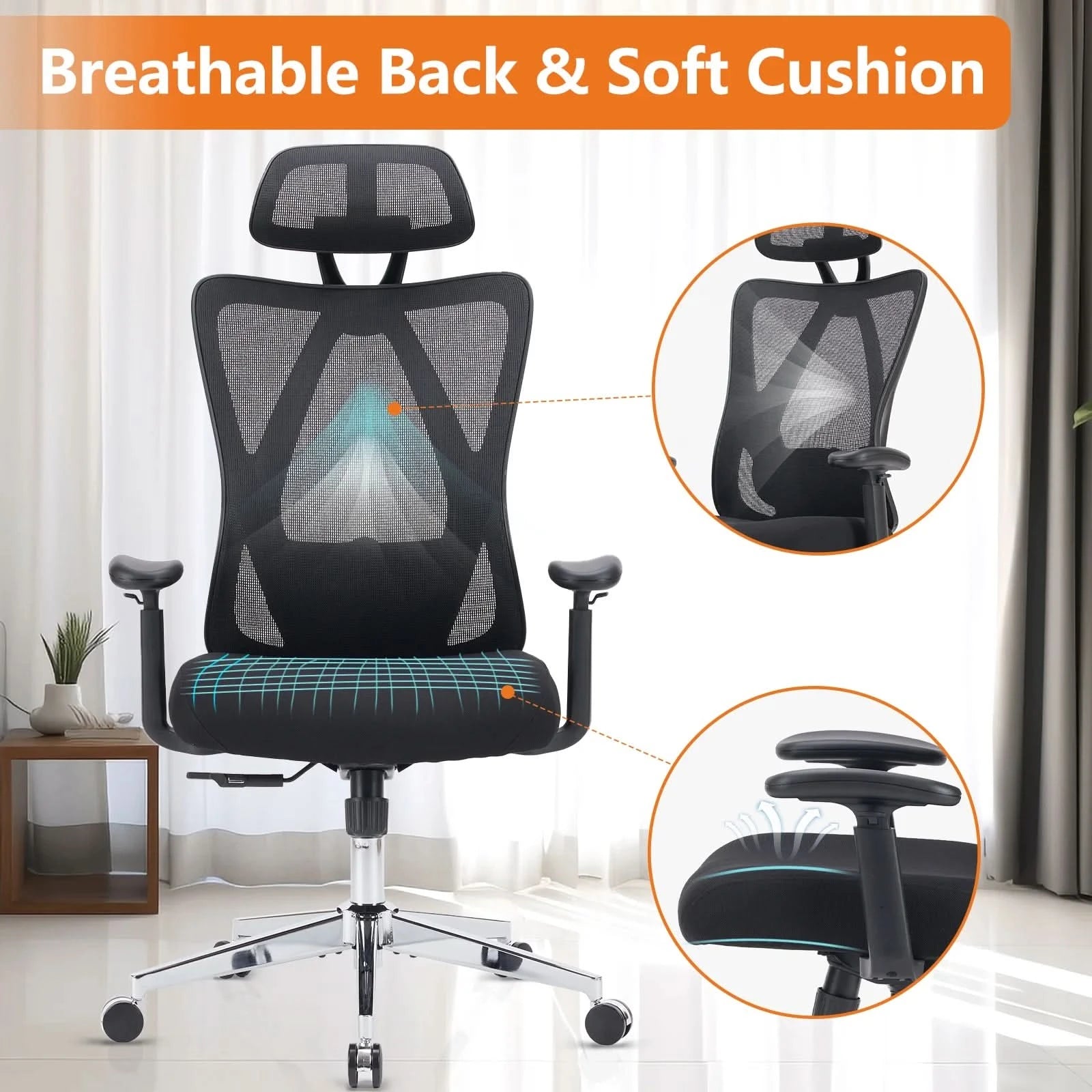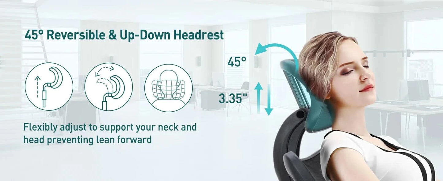 【Enhanced Support with Headrest】Say goodbye to neck tension and hello to uninterrupted focus with the built-in headrest on our ergonomic chair with headrest. The headrest provides extra support and alleviates strain on your neck, allowing you to concentrate on your tasks without distractions