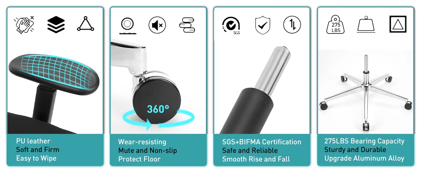 【Easy Mobility】Equipped with smooth-rolling wheels, this computer chair ensures effortless movement around your office or workspace. Switch between tasks seamlessly without having to leave your seat