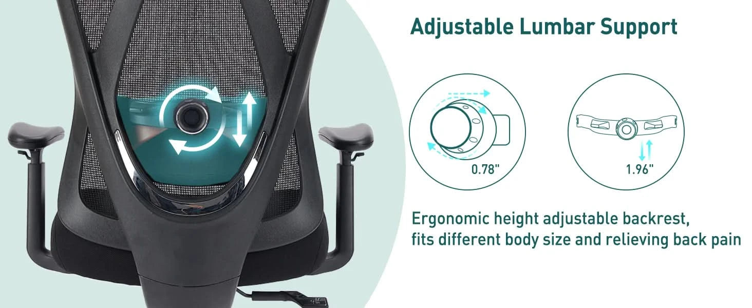 【Personalized Ergonomics】 The adjustable lumbar support feature ensures proper alignment and support for your lower back, promoting healthy posture and reducing the risk of back pain. Find the perfect level of support that suits your individual needs and preferences