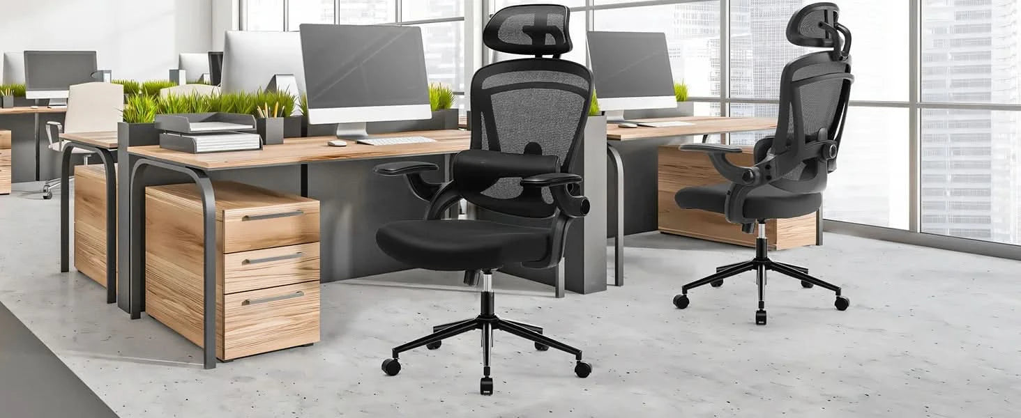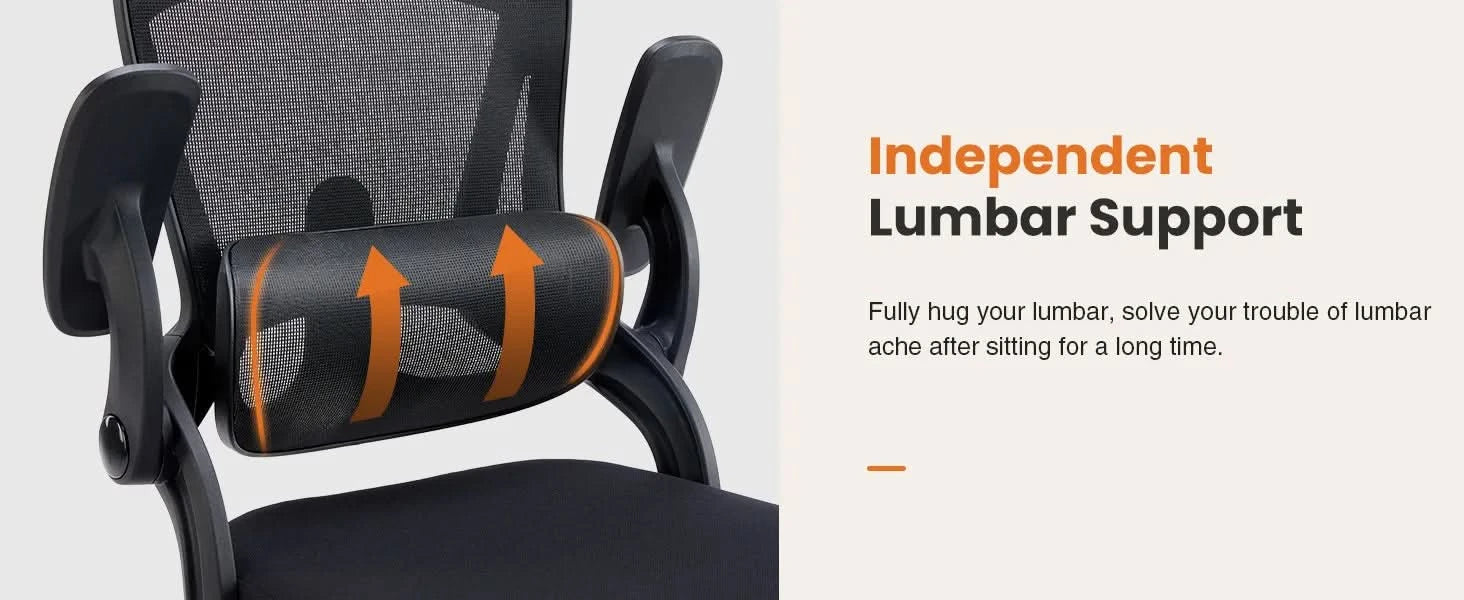 JHK Ergonomic Mesh Adjustable Lumbar Support Office Chair 120°Tilt High Back Comfortable Computer Chair with Soft Flip Up Arms