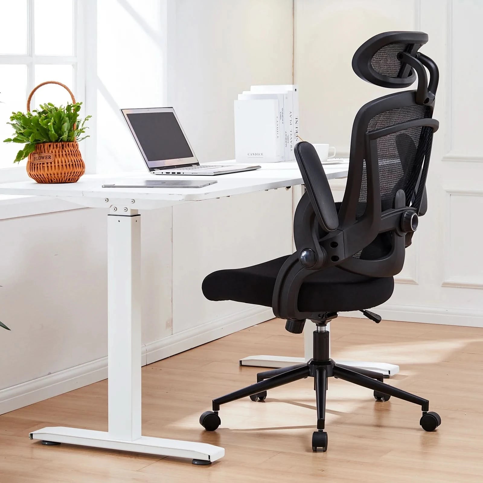 【Space-Saving】- Flip-up armrests are available and won't be in your way when not in use. The Armrests of the computer chair provide comfortable support for your arms and can be flipped up to save space effectively while not in use.