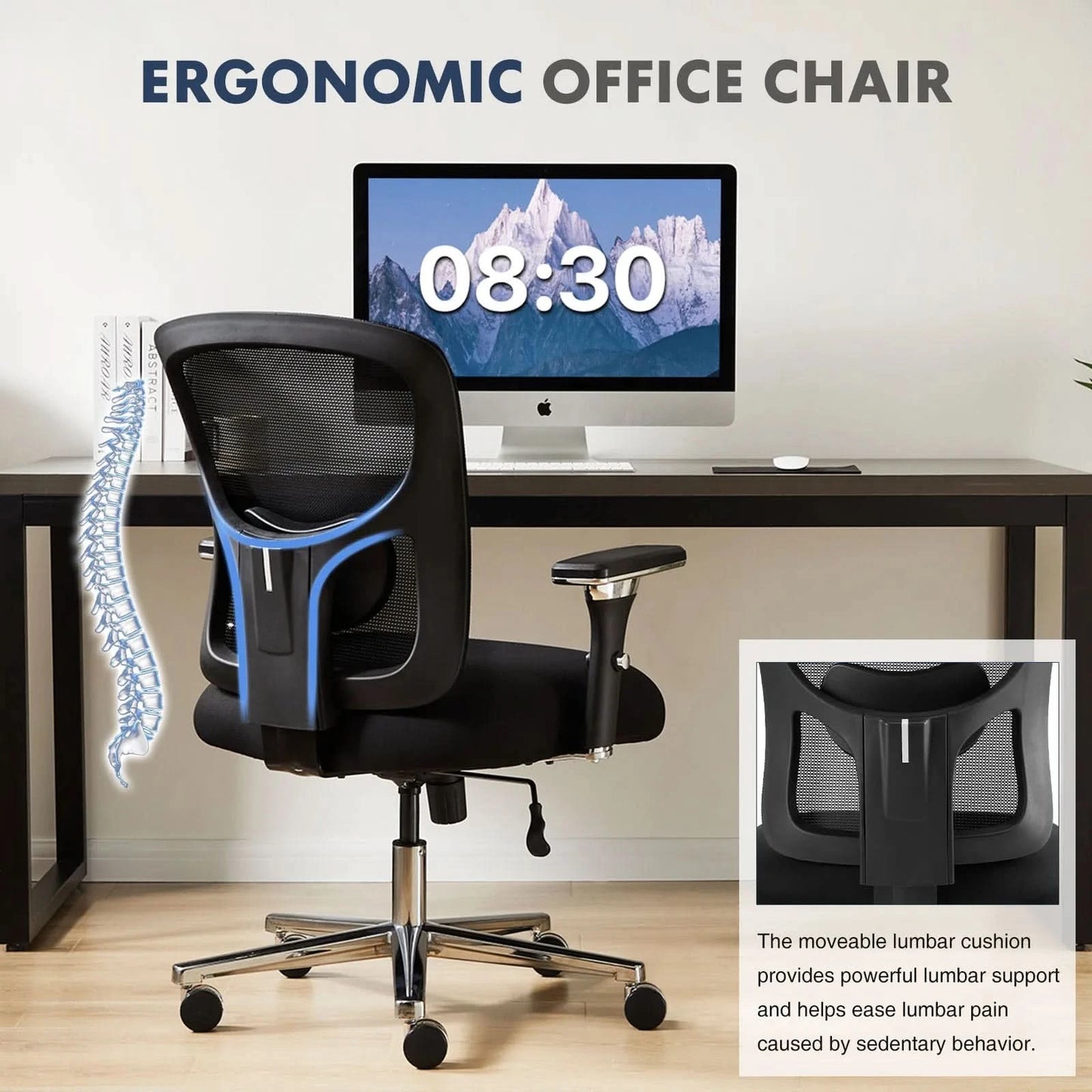 【ERGONOMIC OFFICE CHAIR】This heavy-duty office chair is designed with adjustable lumbar support, adjust the distance of the backrest according to your personal habits, it can provide strong support for your back!