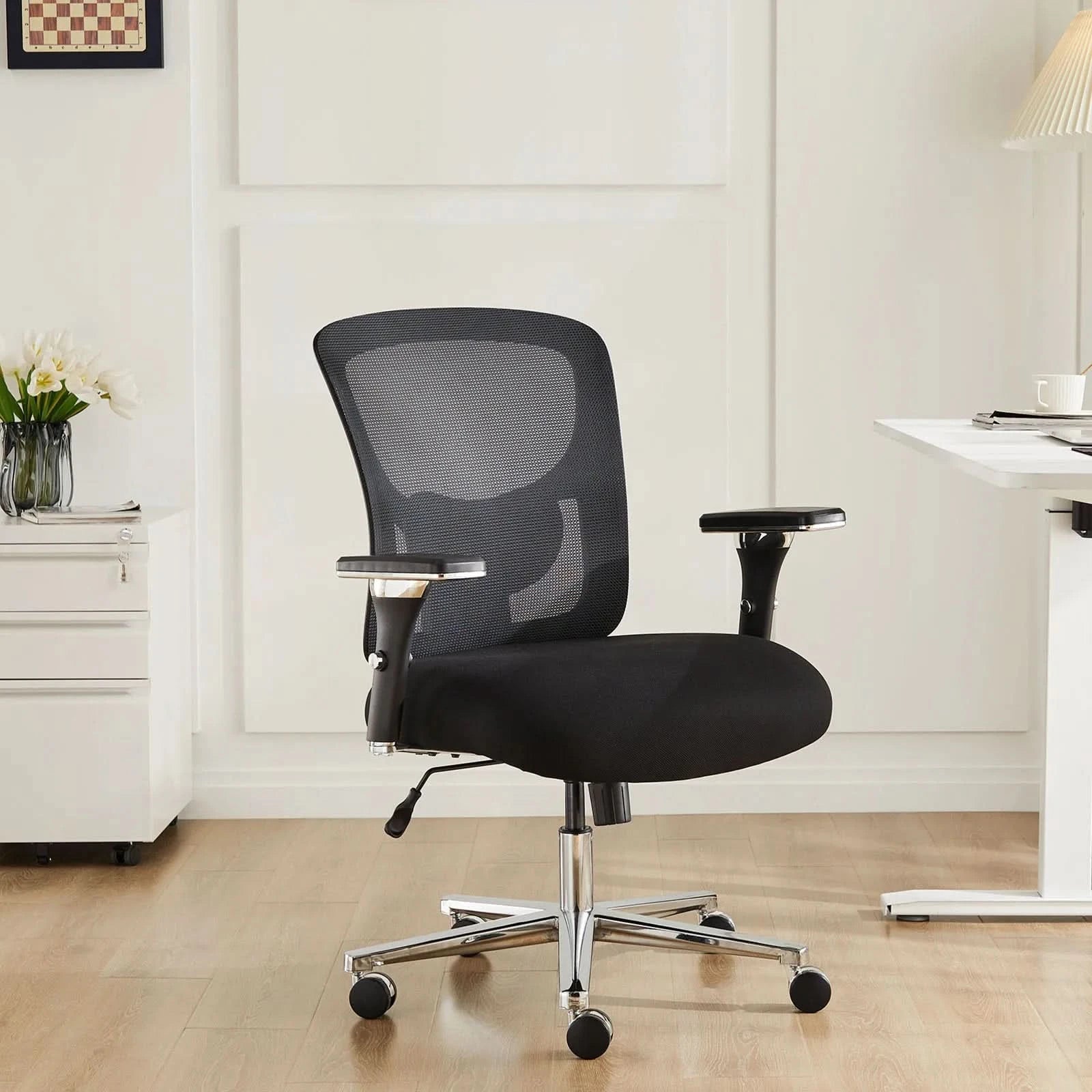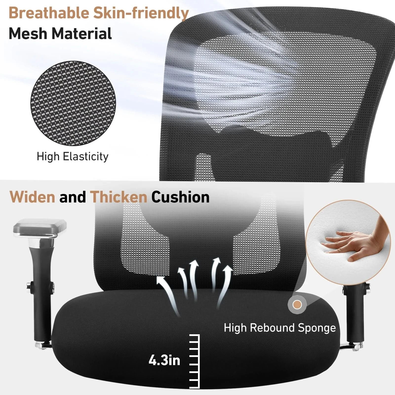 【COMFORTABLE MATERIALS】The surface of the big and tall office chair is designed with mesh fabric for good breathability; the thickened sponge cushion is designed with waterfall front seat edges, which eliminates pressure on the calves and promotes blood circulation