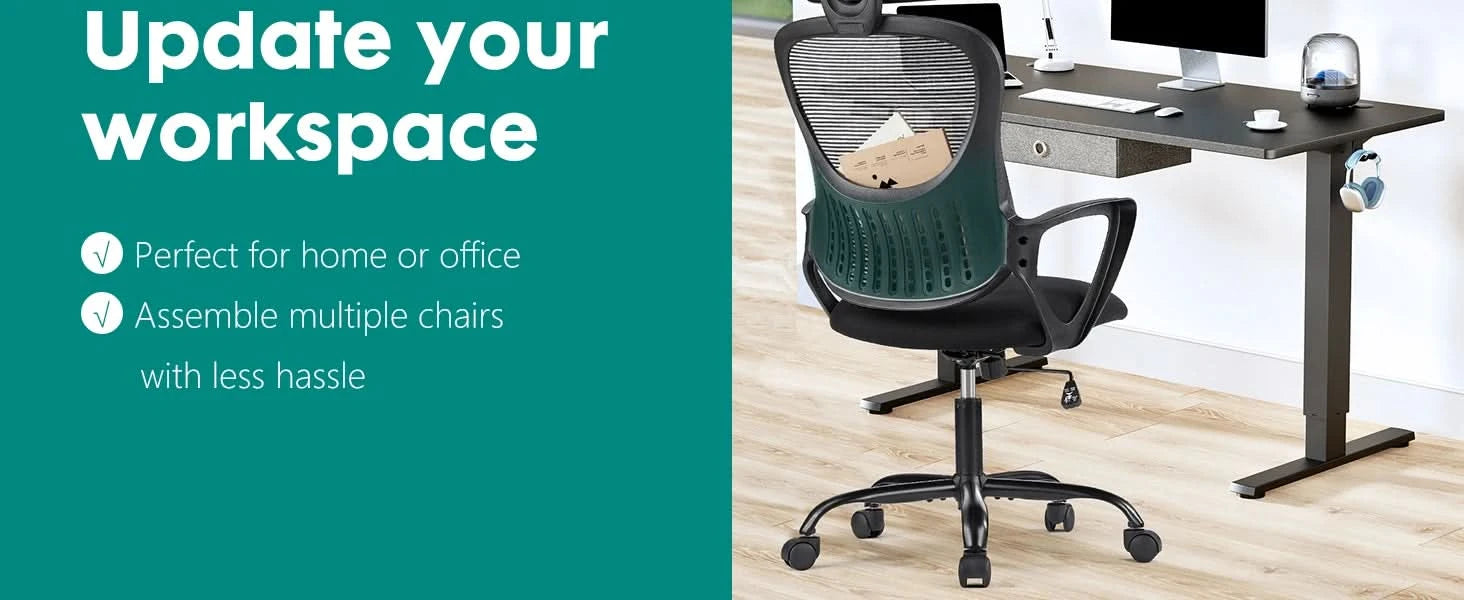 ćErgonomic Lumbar SupportćThe ergonomically designed backrest of our ergonomic office chair has prominent lumbar support to fit the natural curvature of the spine. The Computer Desk Chair with mid-back brings quality and comfort to any office.