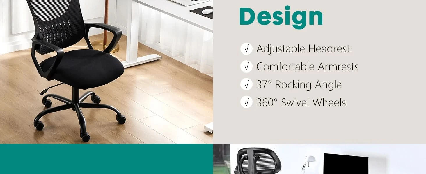ćComfortable SeatćErgonomic features an all-elastic premium mesh back and a high-density sponge seat making the mesh office chair a good choice for all-day comfortable office seating. The unique mesh design is skin-friendly and breathable, which keeps you cool all day.
