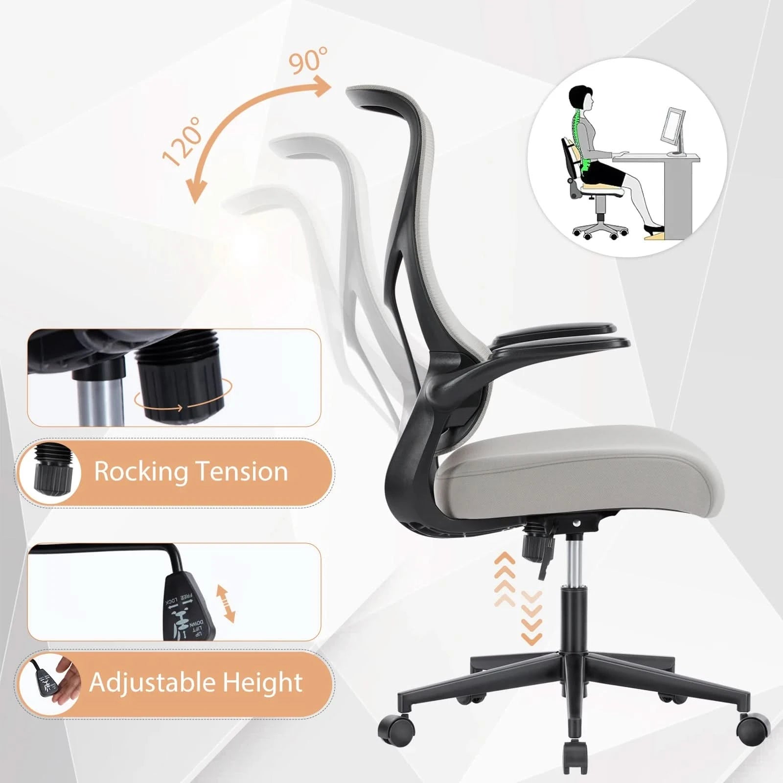 JHK Ergonomic Mesh Lumbar Support Office Desk Computer Chair High Back Swivel Rolling Gaming Chairs With Wheels And Flip-up Arms