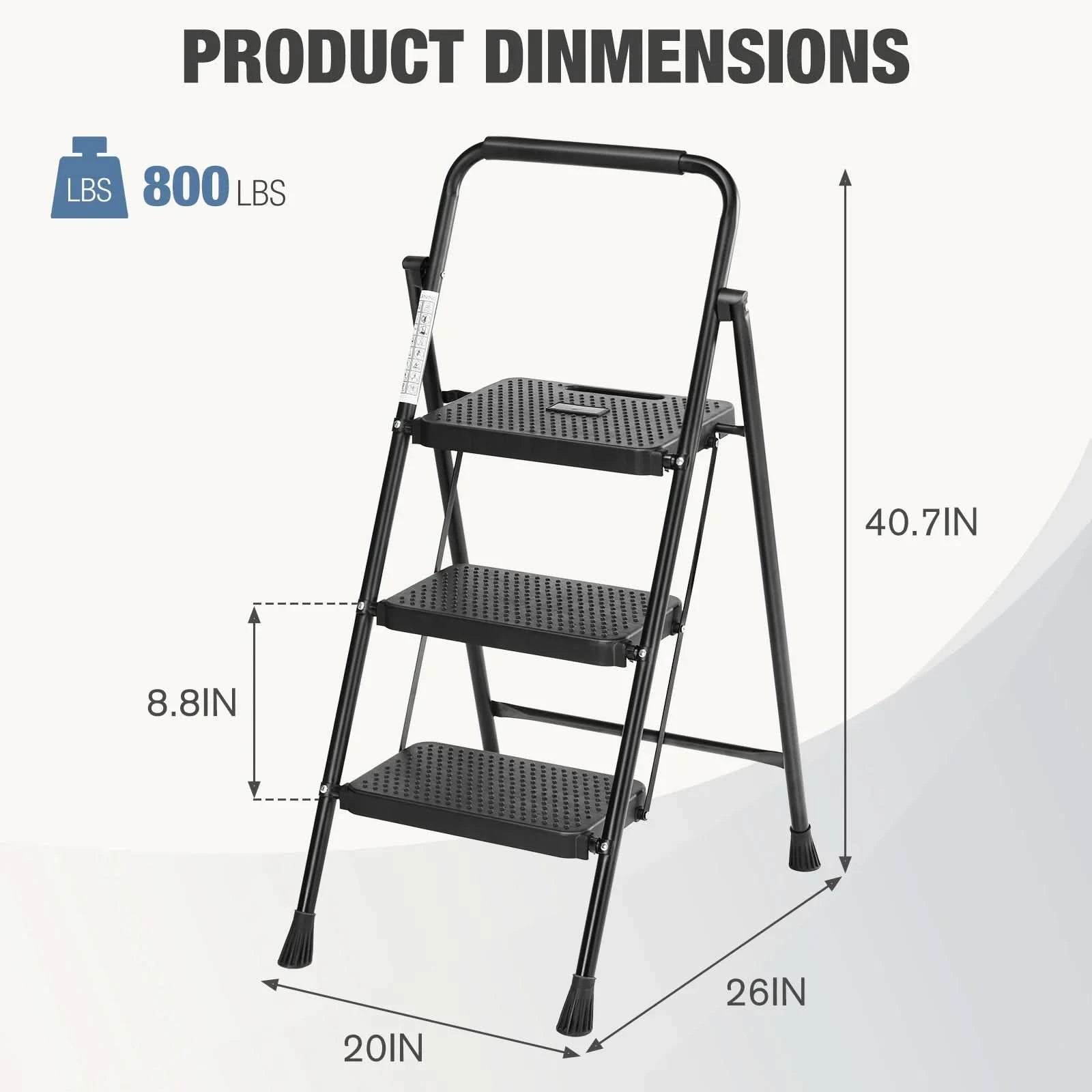 JHK Folding 2/3 Step Ladder Stool with Anti-Slip Pedal 800lbs Capacity Sturdy Steel Portable Cushioned Handle for Kitchen Home