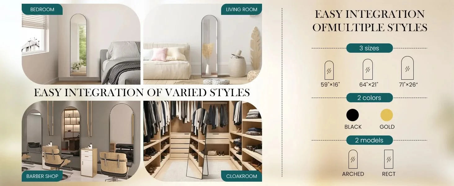 FULL SIZE: The standing mirror is large enough for you to see your entire figure in a single glance. This is not only a body mirror, but also a piece of art in your house that can bring you a nice mood every day.