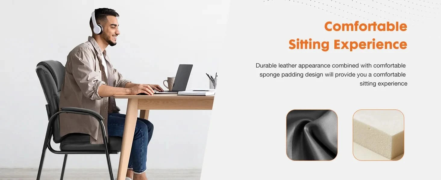 Simple Fashion➤➤ The reception chair is made of high-quality PU leather, which is not easy to wear and tear, waterproof and dustproof, and easy to clean. The leather surface and edges are finely sewn to effectively fix and avoid surface displacement.