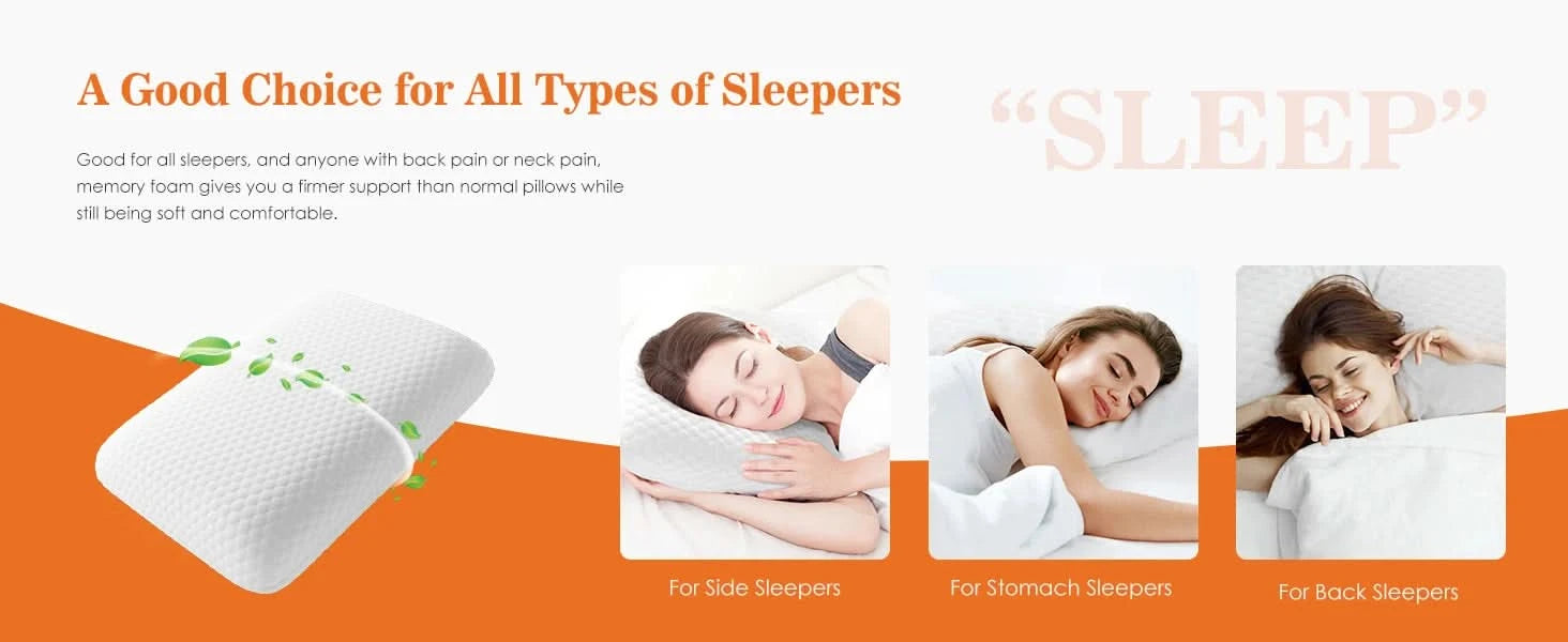 remium Quality Material: Our memory foam pillow is crafted from high-quality sponge which is odorless. Designed with user comfort and health in mind, this pillow ensures no uncomfortable or harmful fumes. Experience a peaceful sleep without any disturbances created by the smell.