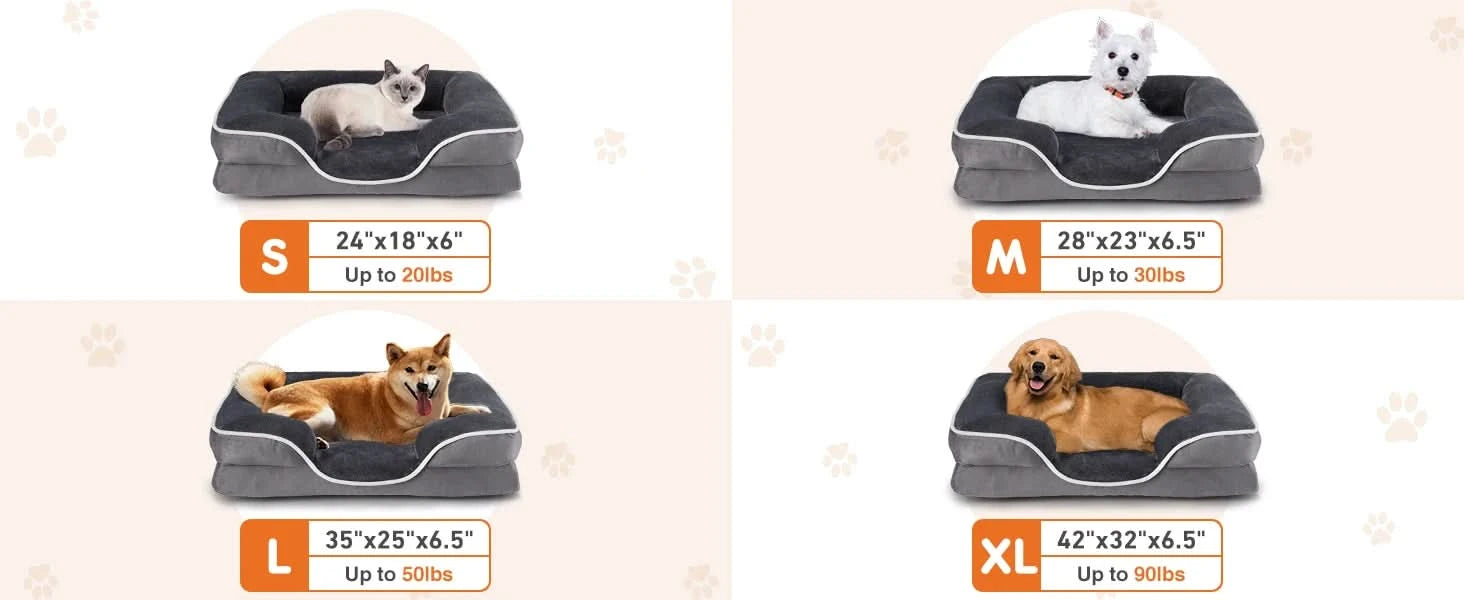 【Suitable for All Breeds and Sizes】Available in multiple sizes, our orthopedic dog bed caters to small, medium, and large breeds. Ensure your pet has enough space to stretch out and relax, providing the ultimate comfort for dogs of any size.