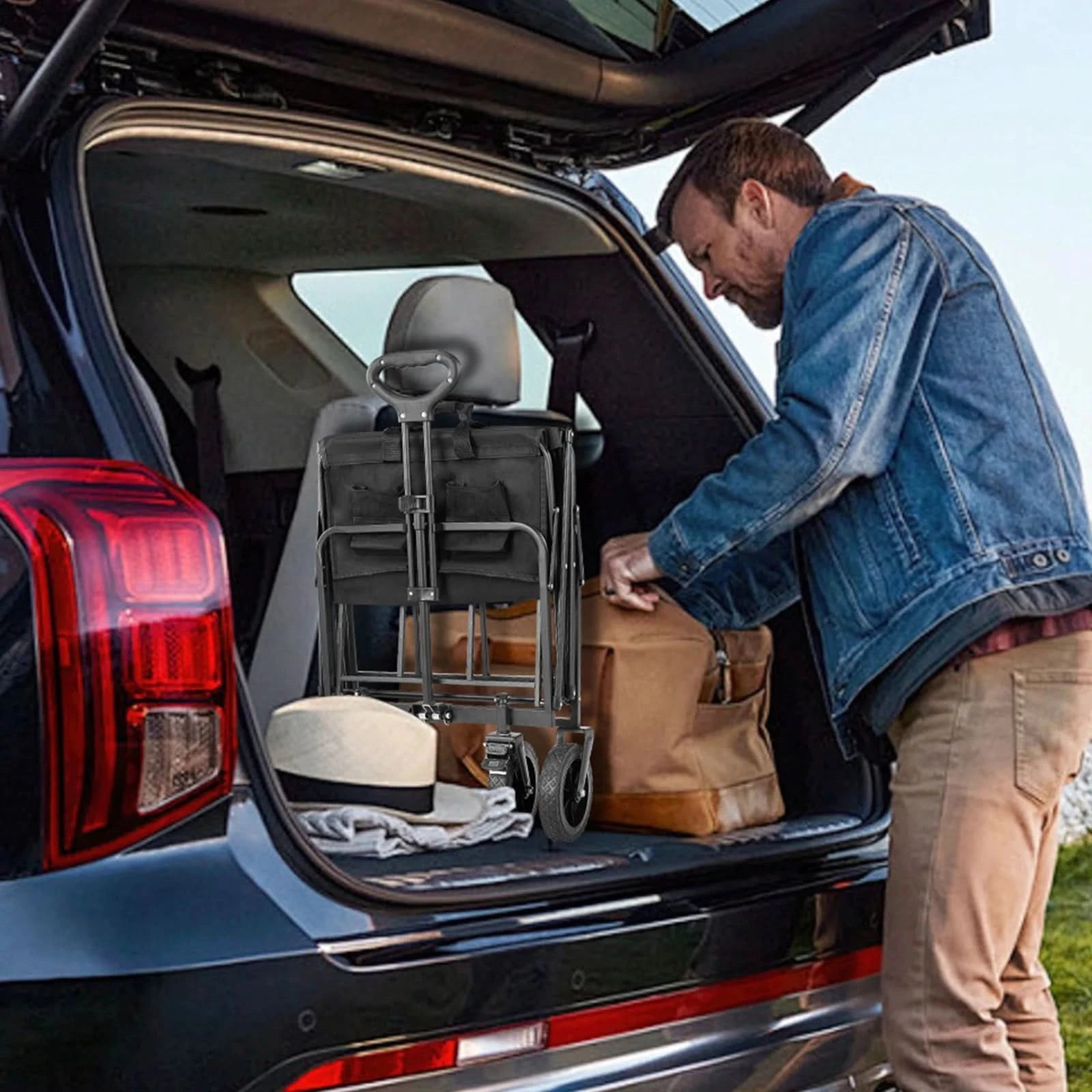 JHK Outdoor Collapsible Foldable Garden Beach Cart Large Capacity Wagon Cart Utility Grocery Wagon for Shopping Sports Camping