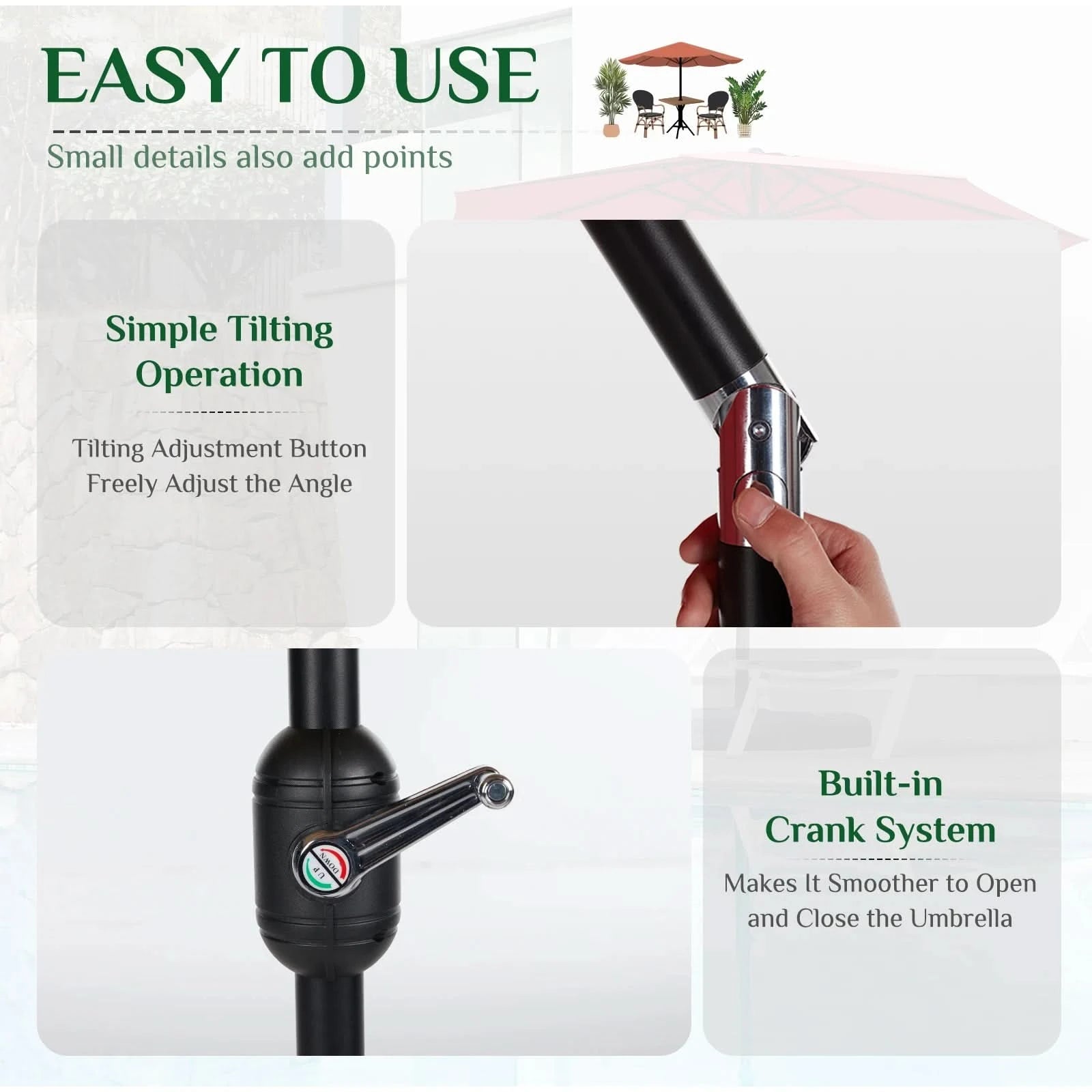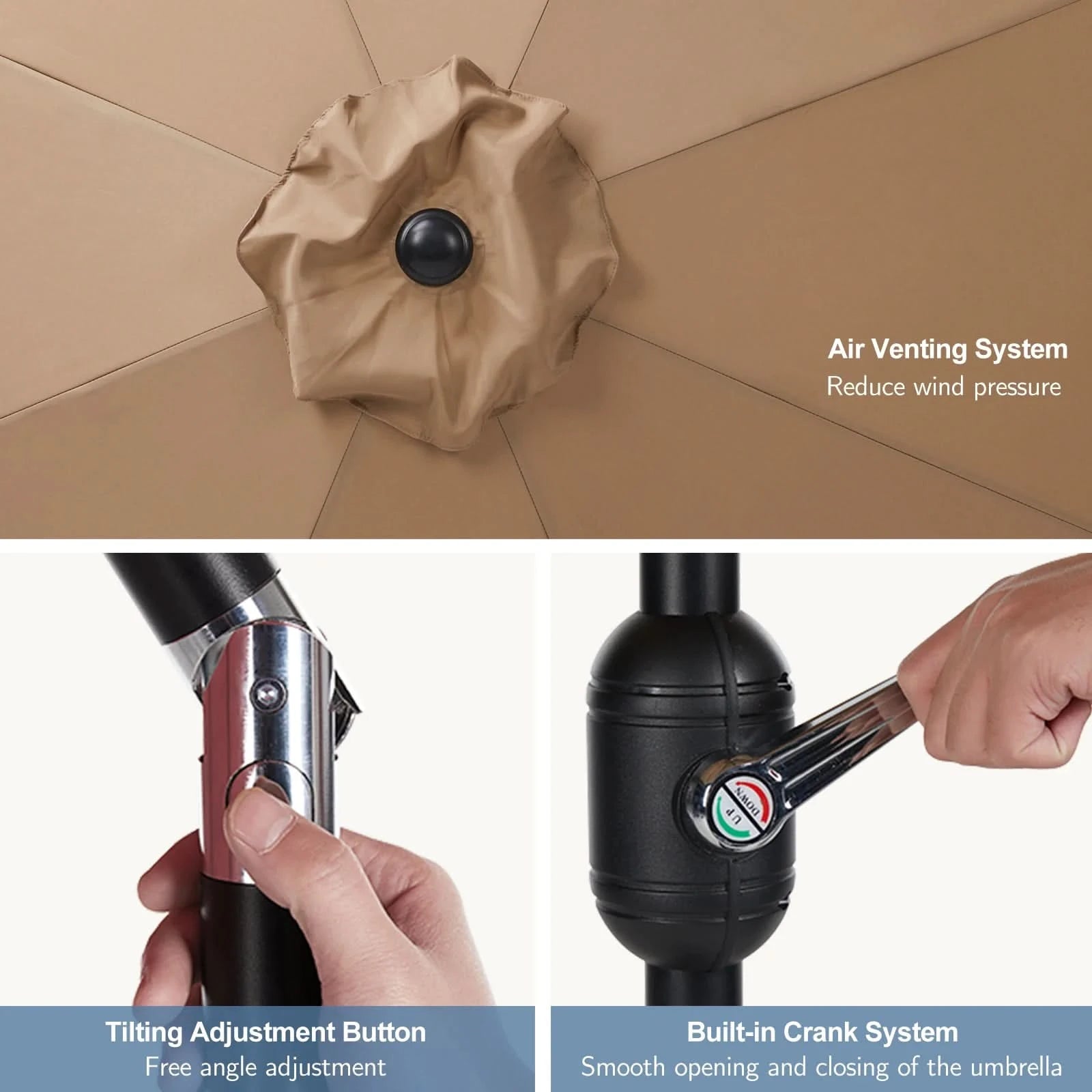 š ćEASY OPERATIONć: Featuring a crank open system and button tilt mechanism, this market umbrella offers effortless operation, allowing for quick setup and adjustment to achieve the desired shading angles.