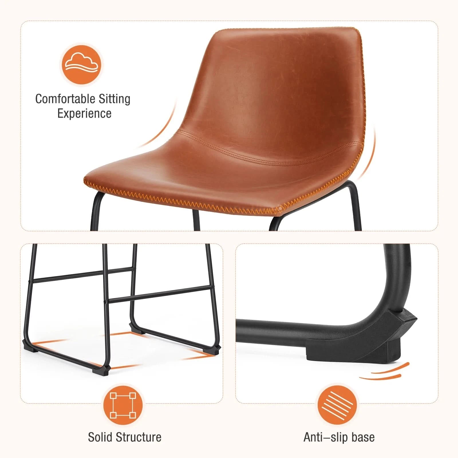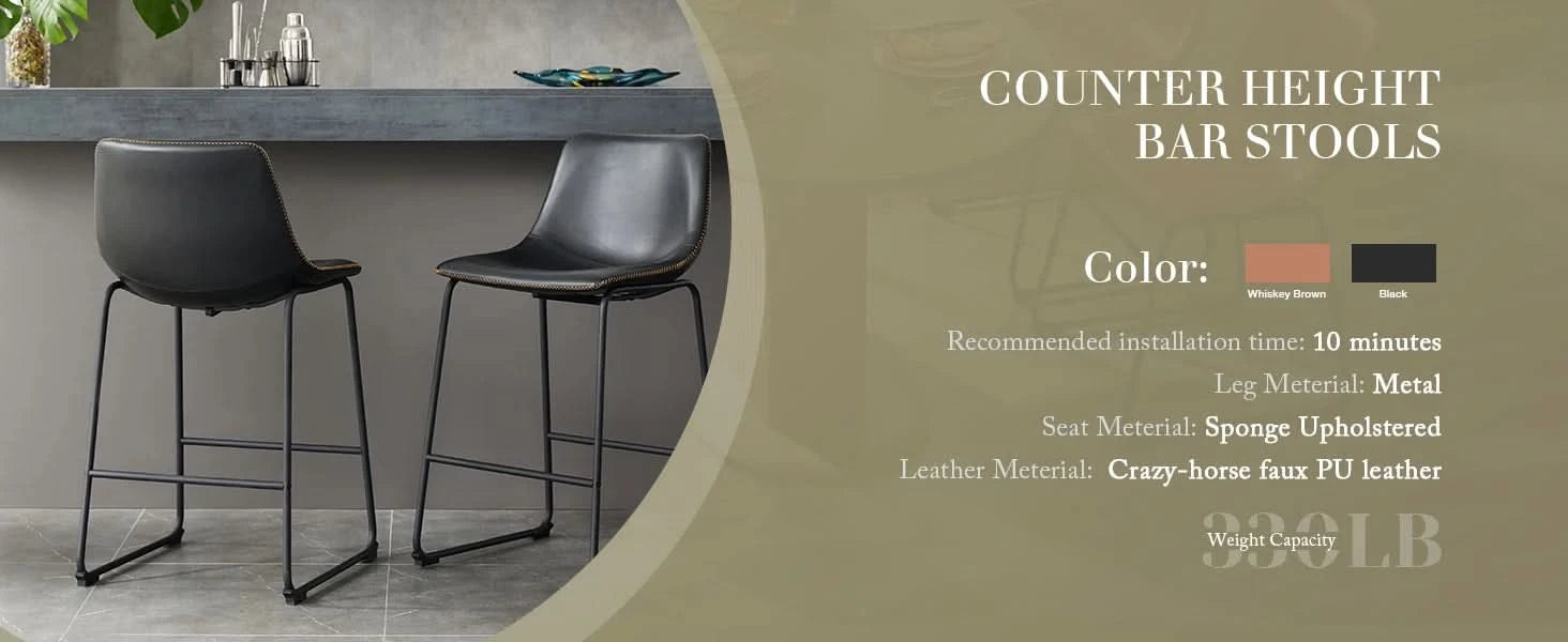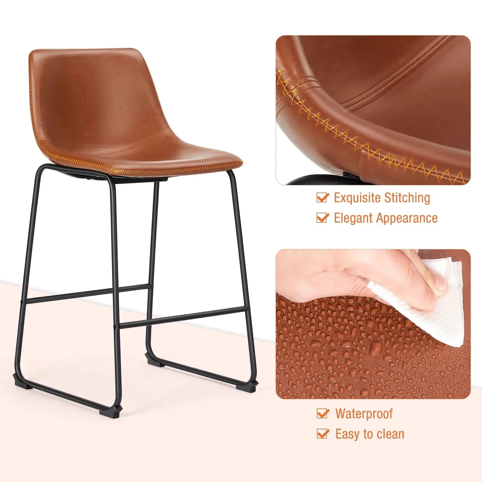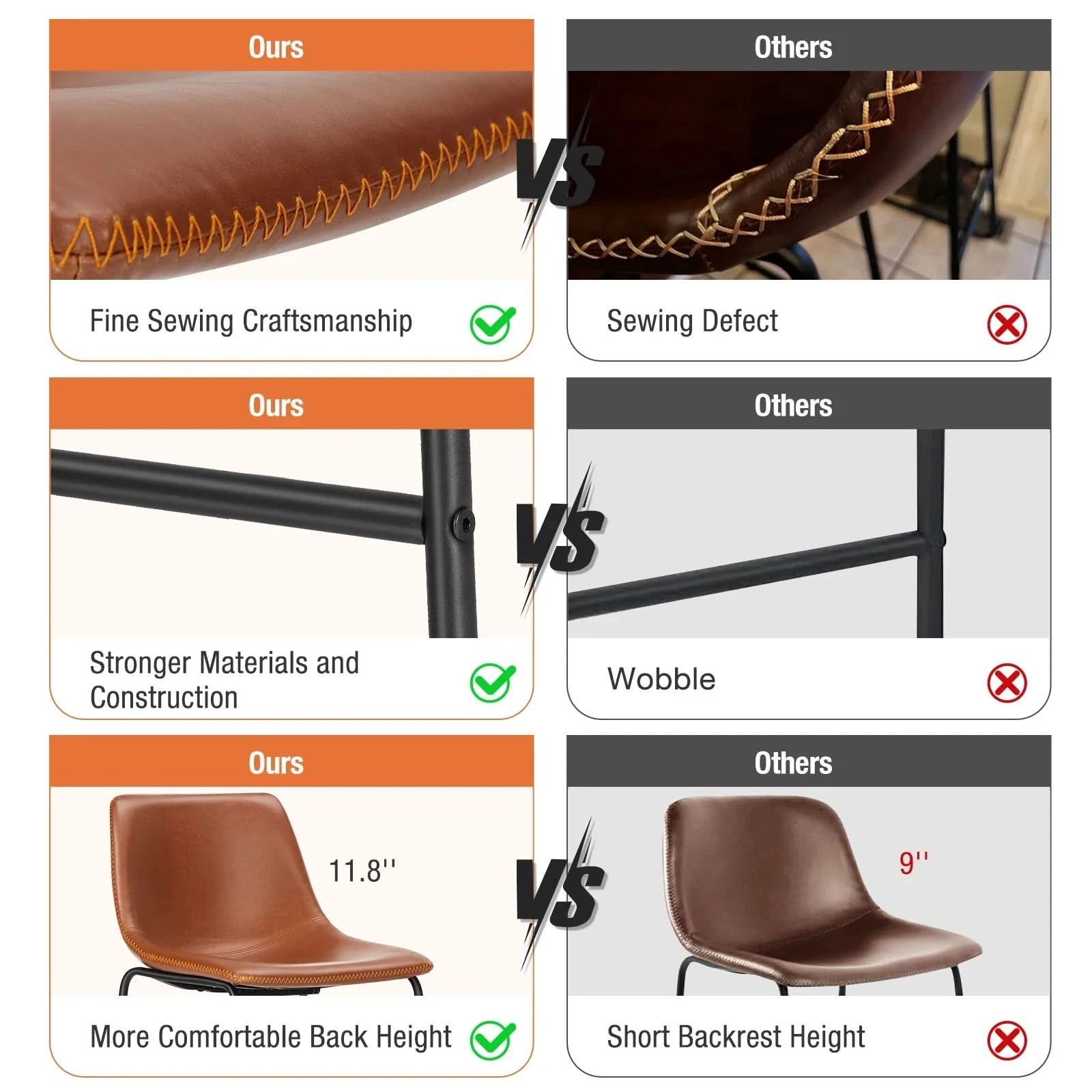 【Waterproof Leather Bar Stool】 Upholstered in premium crazy-horse faux PU leather, these dining chairs set of 2 have a charming farmhouse and rustic tone. The waterproof leather is easy to clean and maintain, requiring only a damp towel to keep them looking brand new.