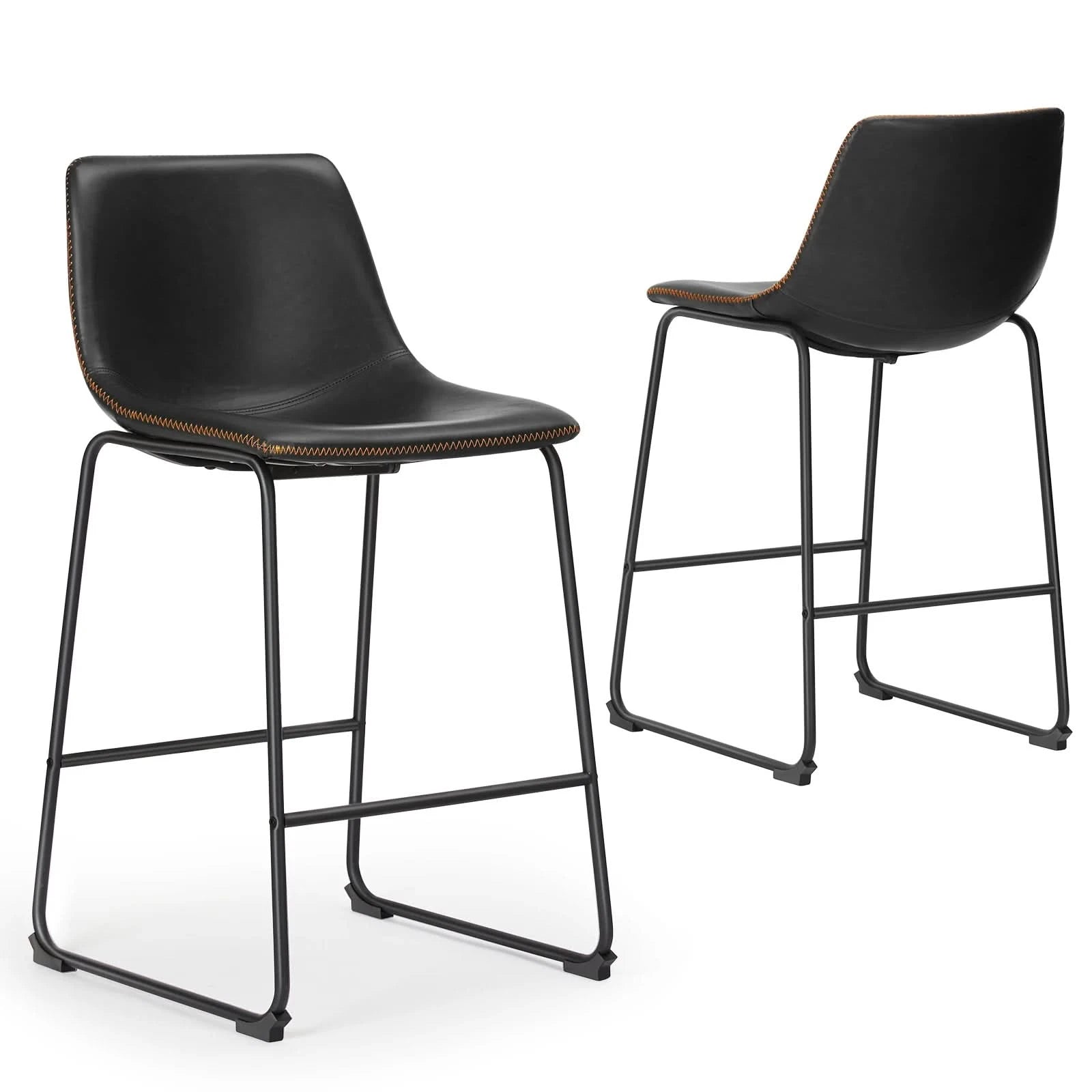 JHK Pu Leather Bar Stools Set of 2 Counter Height High Kitchen Dining Chairs Comfortable Sponge Cushion Island Modern Stool