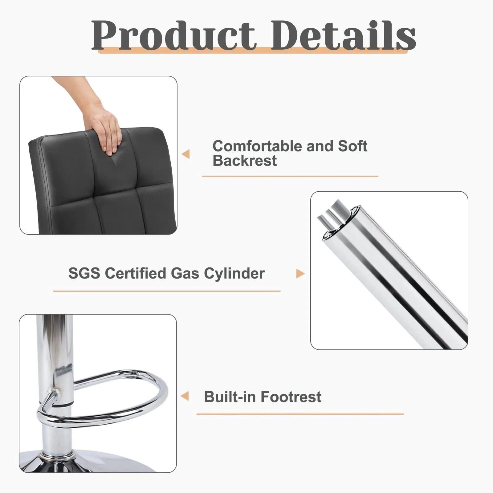 【Comfortable Seating】The bar stools feature sponge cushions and durable PU leather, providing a soft seat with a built-in footrest for relaxation.