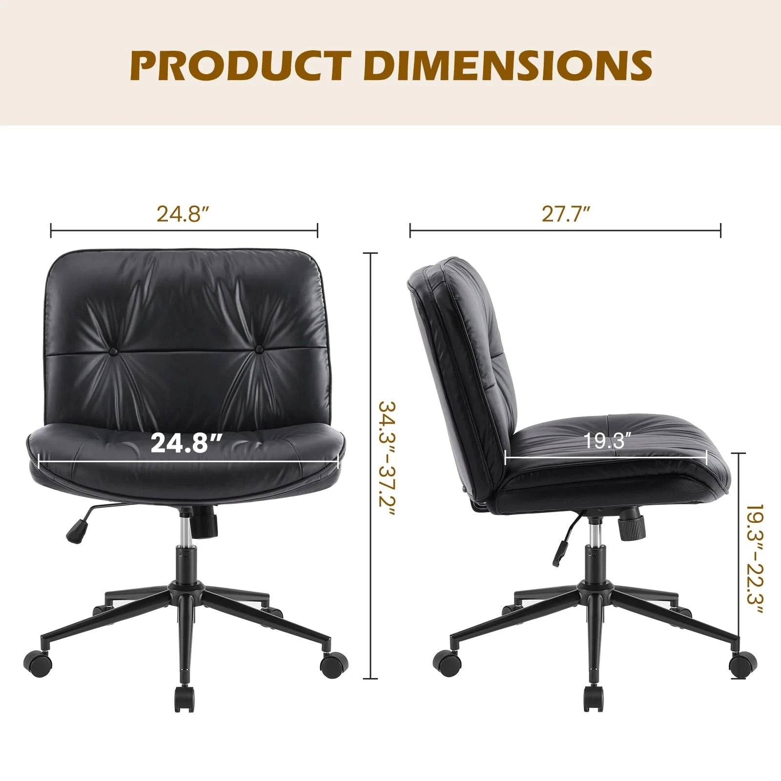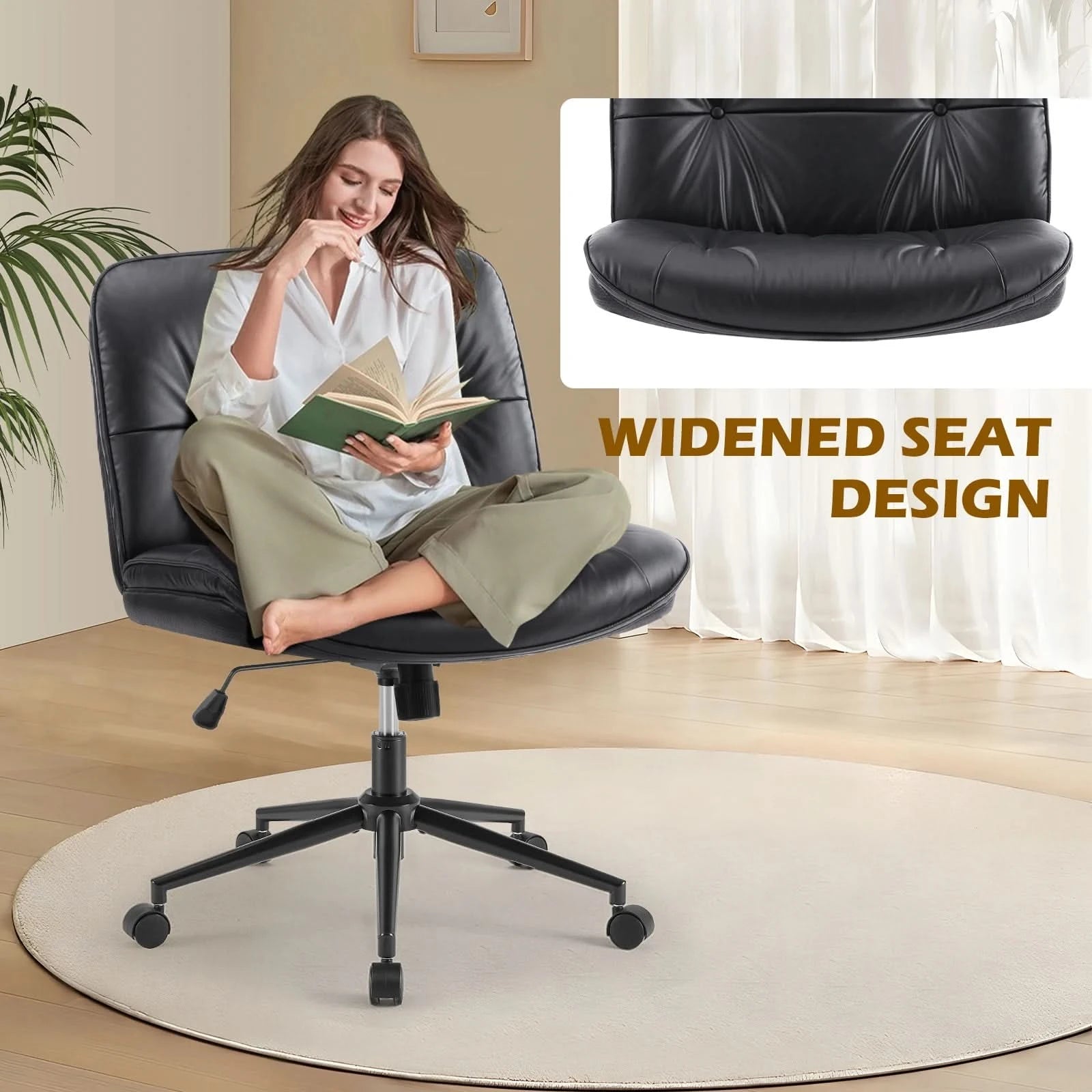 JHK PU Leather Cross Legged Office Chair with Wheels Armless Desk Chair Height Adjustable Swivel Wide Seating for Home Bedroom