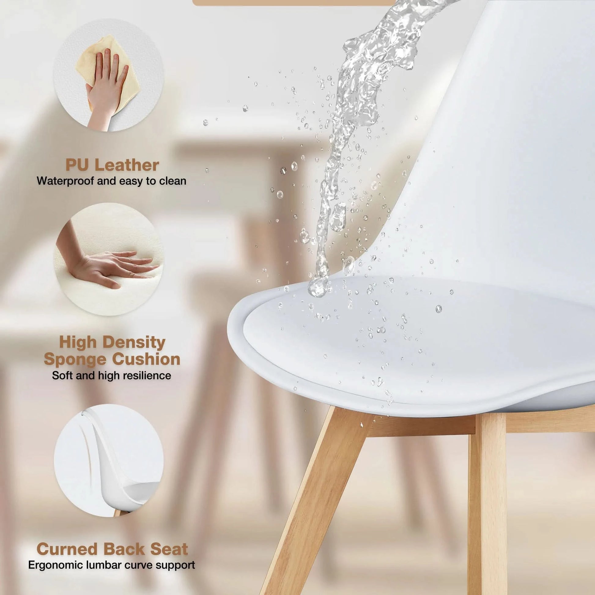 【Comfortable Cushion】The dining chairs are made of thickened high-density foam cushion, which is fuller and more comfortable, providing you with a cozy sitting experience. The soft-touch waterproof PU seat surface is easy to clean and maintain, ideal for dinner or family gatherings.