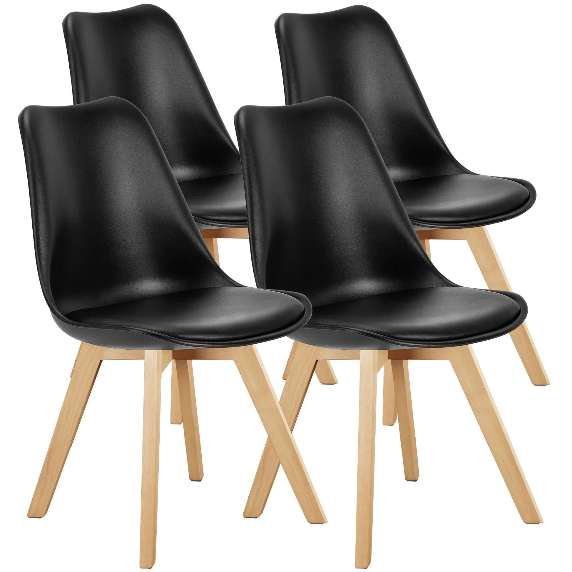 JHK PU Leather Dining Chairs Set of 4 Wooden Legs Lounge Chair for Home Kitchen Comfortable Sponge Cushion Living Room Chair
