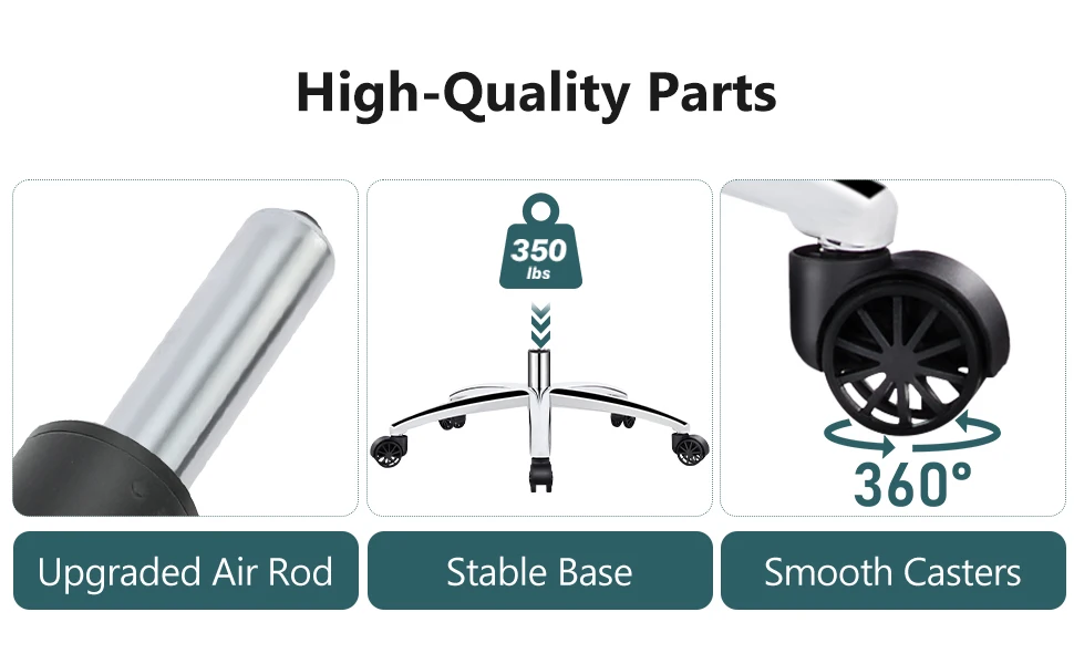【CERTIFIED HIGH QUALITY MATERIAL】Our computer chairs' exterior is made of expensive and environmental soft PU leather; The interior adopts thick and non-deformable high resilience sponge; Every part of chair has been carefully selected, smooth and silent wheels; SGS certified Class 3 gas cylinder; sturdy metal base, tested more than 100,000 times, with BIFIMA certification.