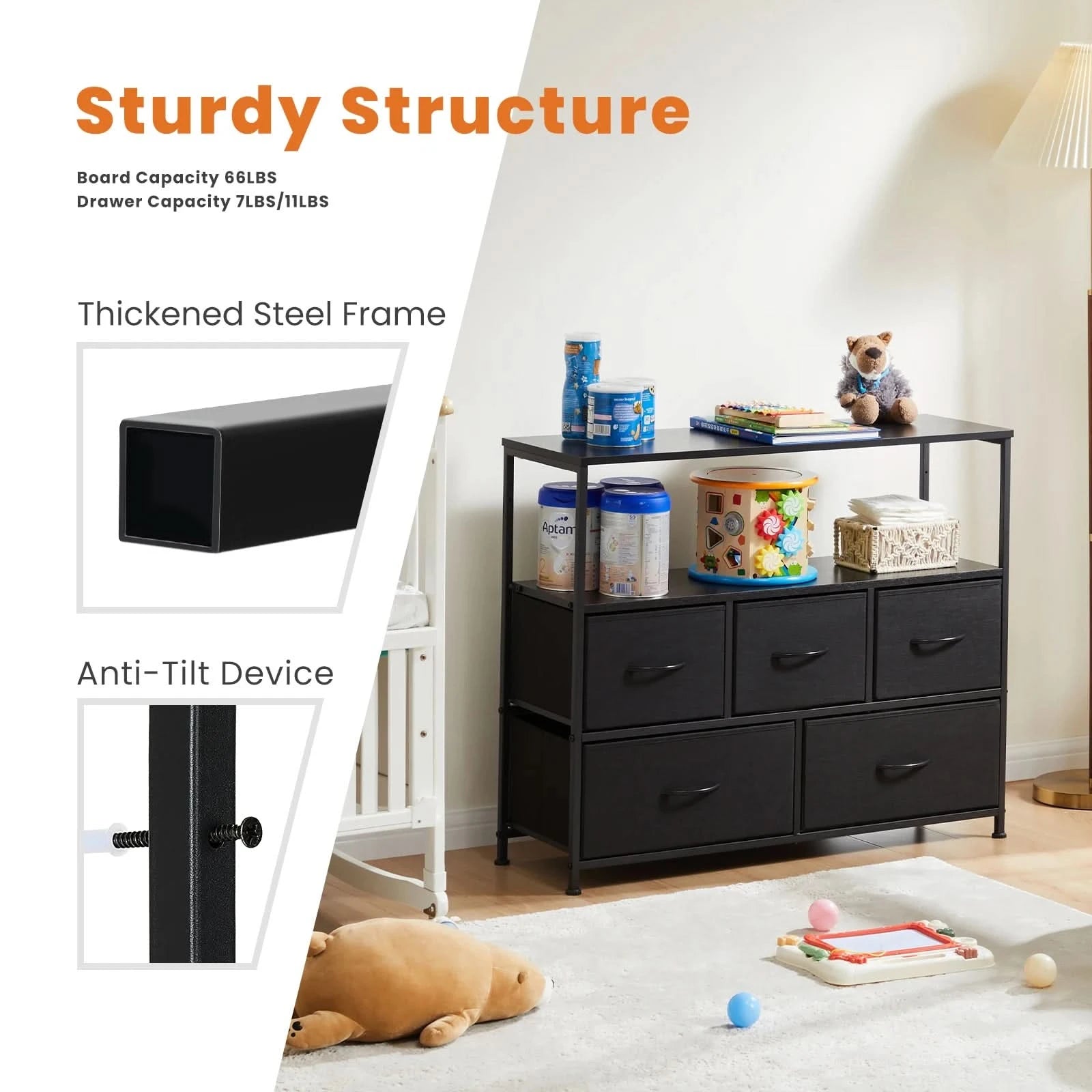 JHK Shoe Cabinet Dresser With 5 Fabric Drawers Toy Storage TV Stand Multilayer Shoe Rack Space Saving Cabinet Of Home Furniture