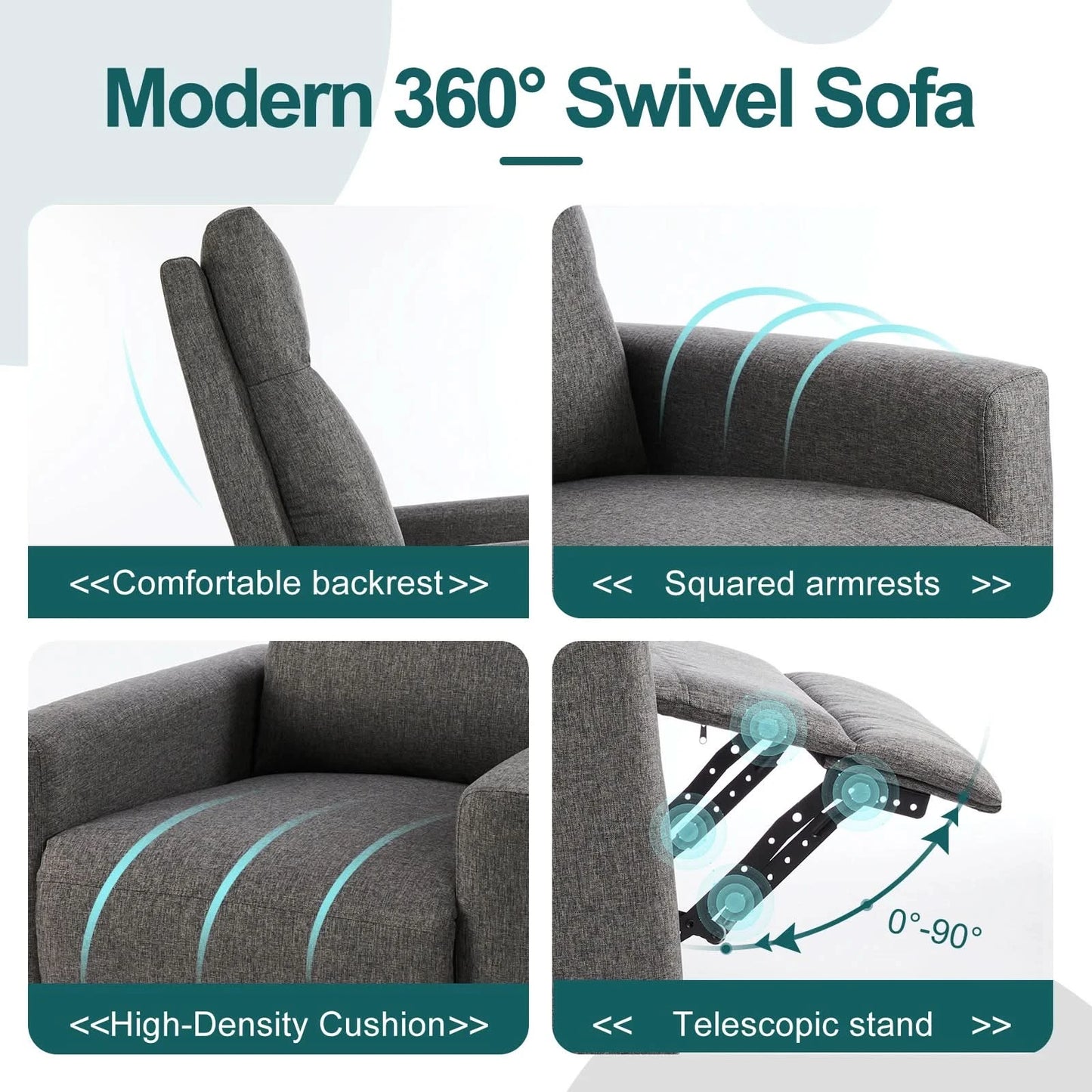 JHK Swivel Rocking Living Room Sofa Manual Upholstered Seating Recliner Angle Adjustable with Extra Large Footrest for Bedroom