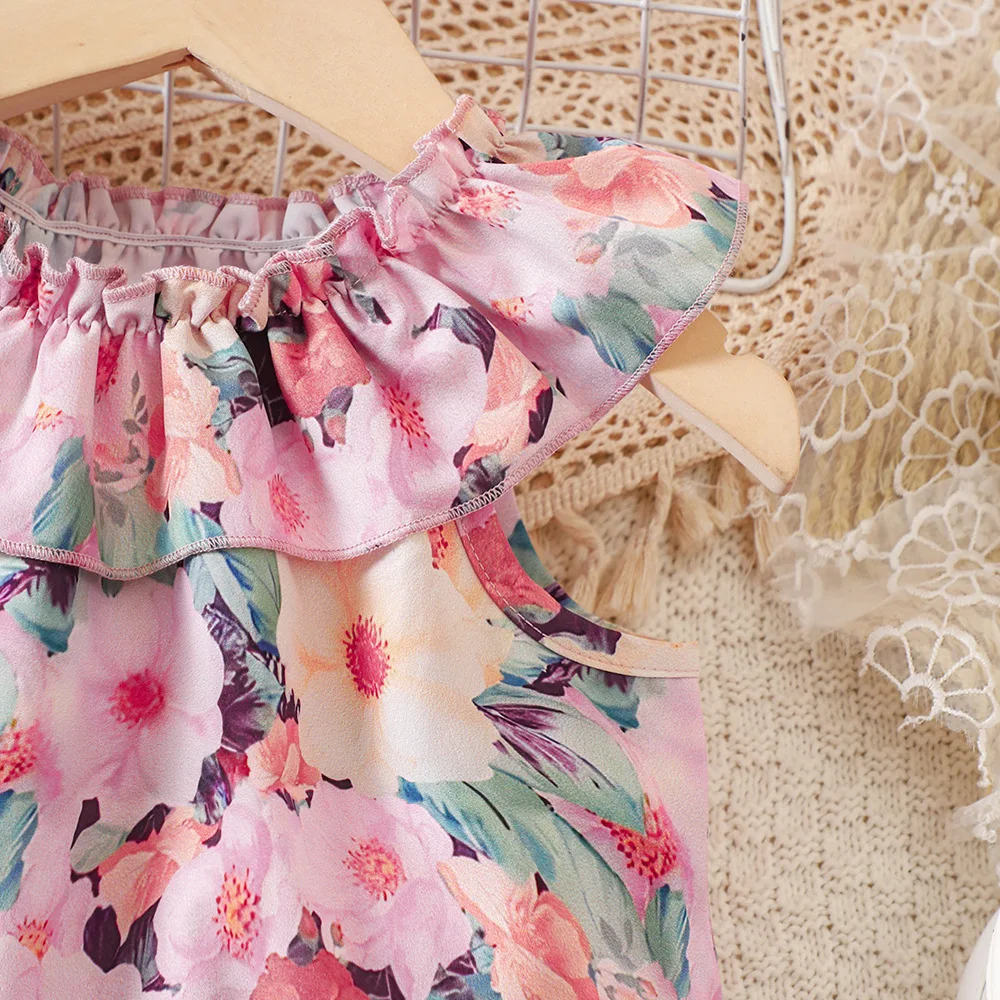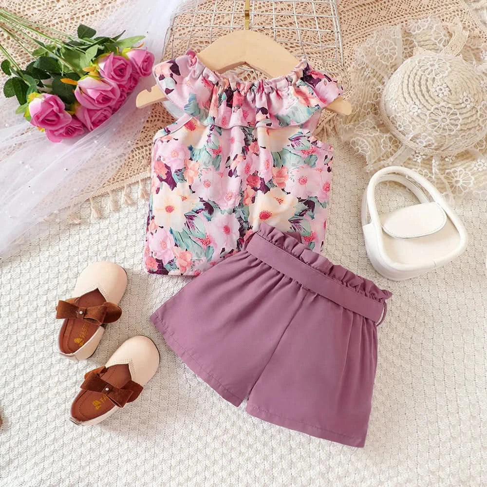 Kids Casual Summer Clothing Sets Outfits for Girls 2024 New Toddler Floral Print Ruffles Tops Short Pant Fashion Children 1-8Y