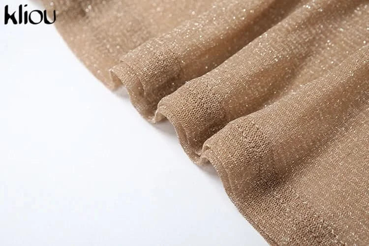 kliou Shiny Long Dress Stunning Women Solid Summer Thin Mesh Sheer Backless Sleeveless Bodycon Female Elegant Fashion Vestidos